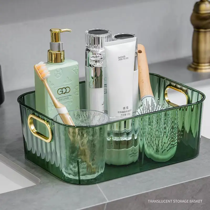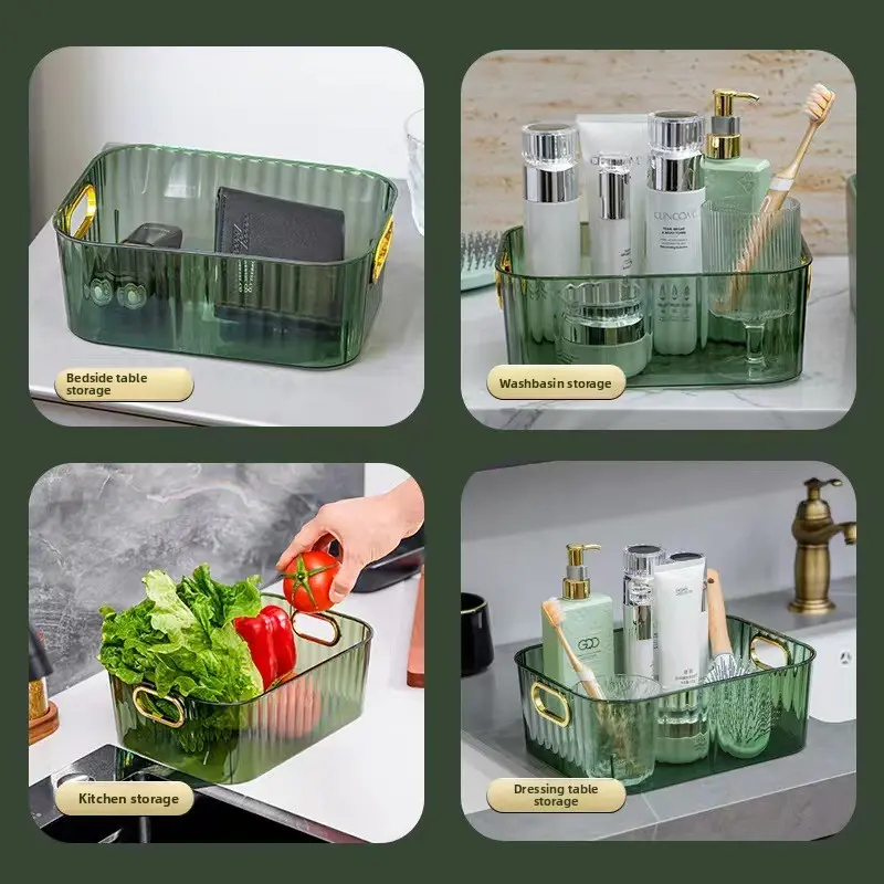 Acrylic desktop storage box, transparent dormitory desk stationery and book organizer, office file basket