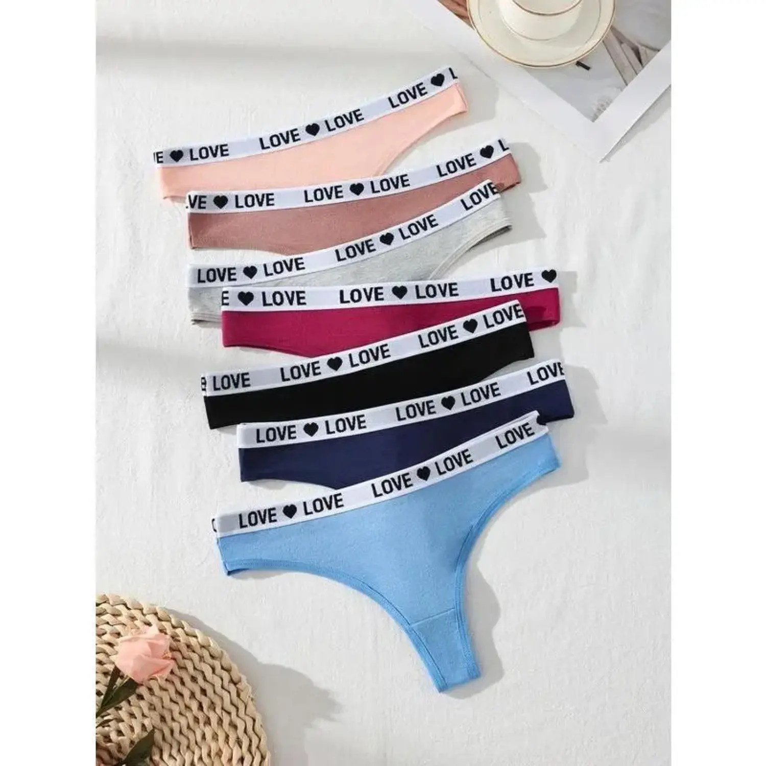 7-Pack Women's Low-Waist Thong Panties Soft cotton-spandex blend with a lovely heart waistband, these seamless underwear offer an invisible, no-show fit.Breathable, stretchy and ultra-soft for all-day comfort, ideal for daily wear at home or outdoors.A must-have intimate essential for comfy, stylish everyday use!