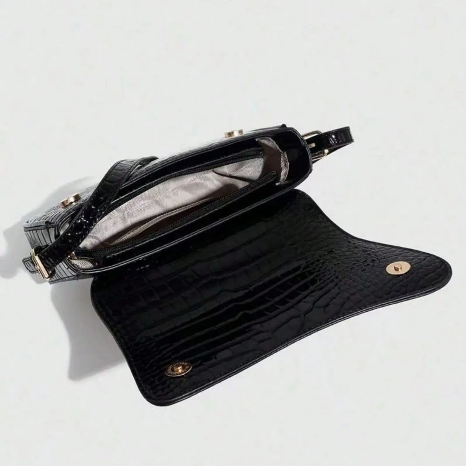 Faux Leather Crocodile-Embossed Mini Chain Shoulder Bag — Stylish Crossbody & Handbag with Adjustable Chain Strap Ideal for Daily Commuting, Shopping, and Travel