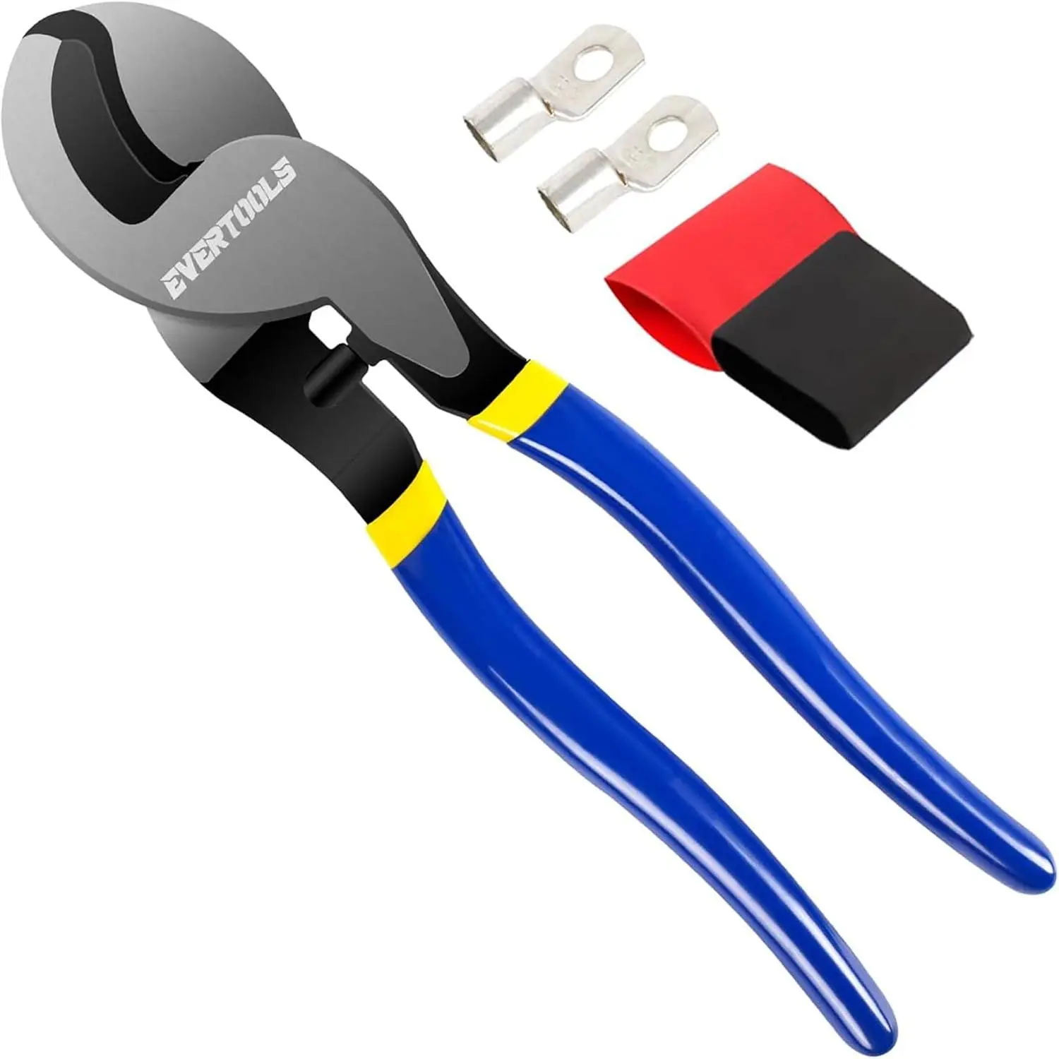 Ready-to-Use Kit: Includes the cable cutter tool plus 2 insulated ring terminals (1/0 AWG, 3/8 in. stud) and 2 heat-shrink sleeves (9 mm diameter, 3:1 shrink ratio)-helpful for finishing cable connections cleanly and securely