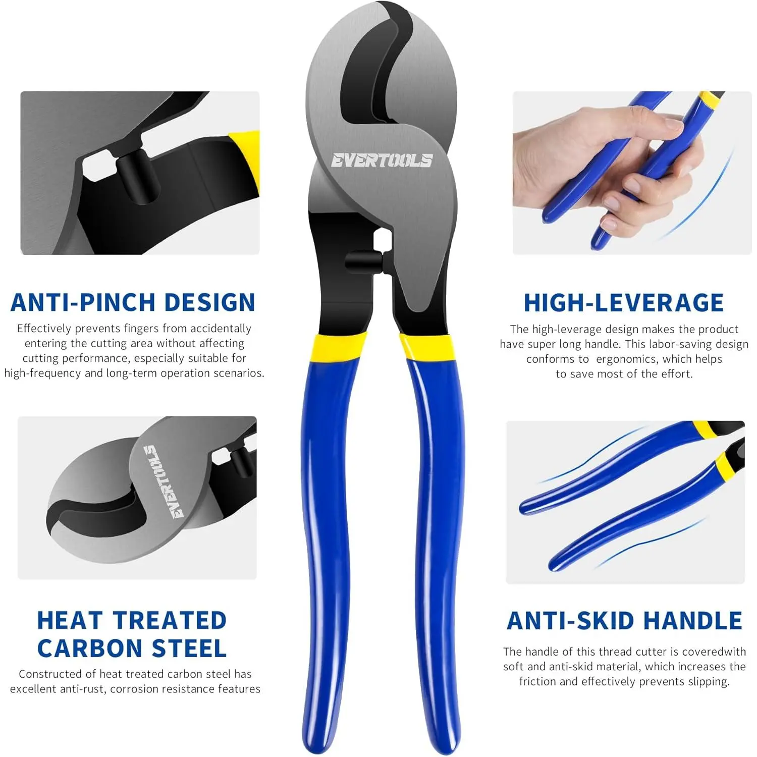 Controlled Cuts With Less Effort: Evertools high leverage cable cutter delivers strong cutting power for clean, controlled cuts-designed to reduce hand strain in daily electrical and telecom work