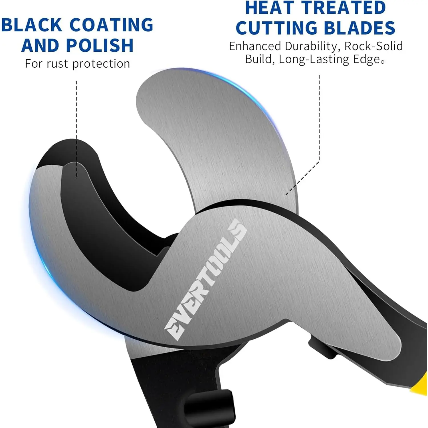 Durable, Rust-Resistant Build: Heat treated carbon steel blades with black coating and polish help resist rust and wear, this cable shears cutting tool supporting consistent performance over repeated use