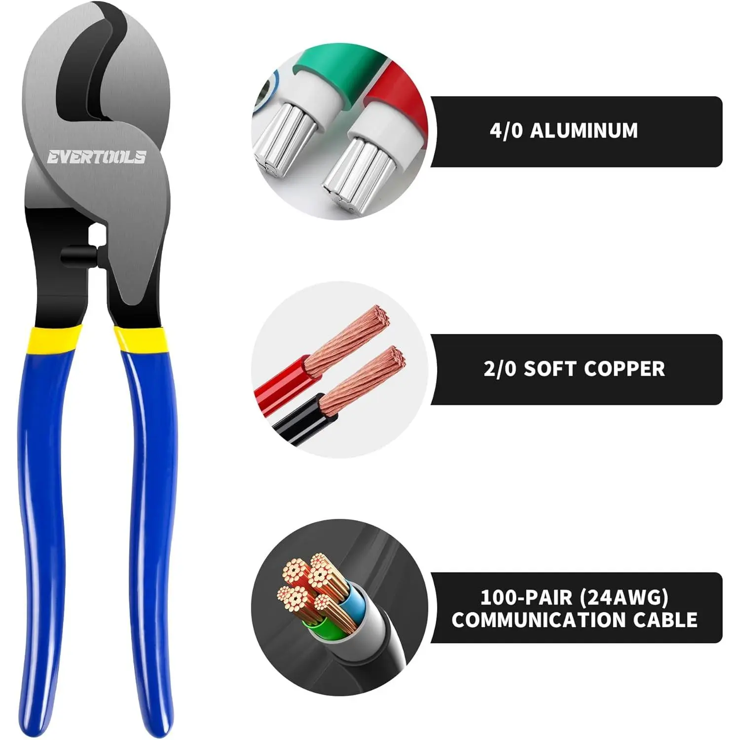 Professional 10-Inch High-Leverage Cable Cutter for Electrical and Telecom Applications, Designed for Clean Cutting of Aluminum and Soft Copper Cables, Durable Hand Tool for Professional Electricians and Technicians