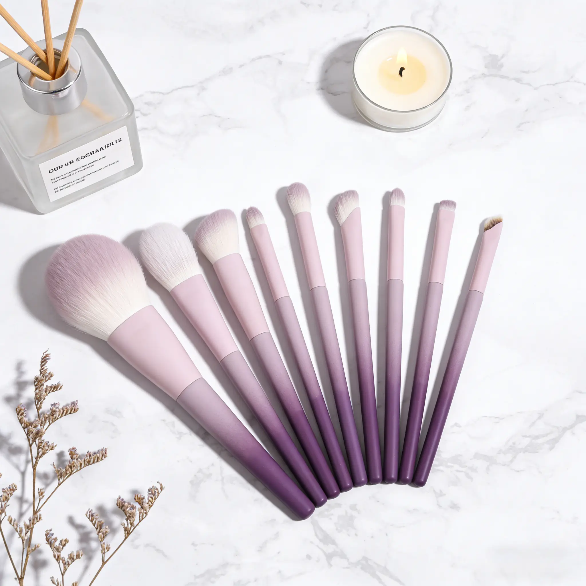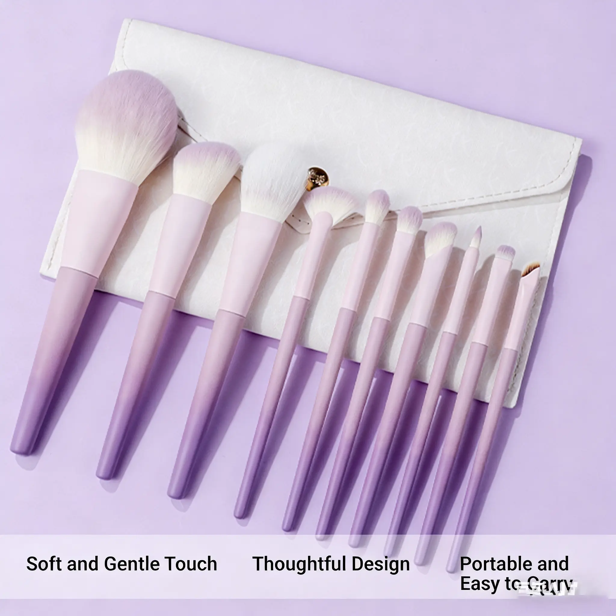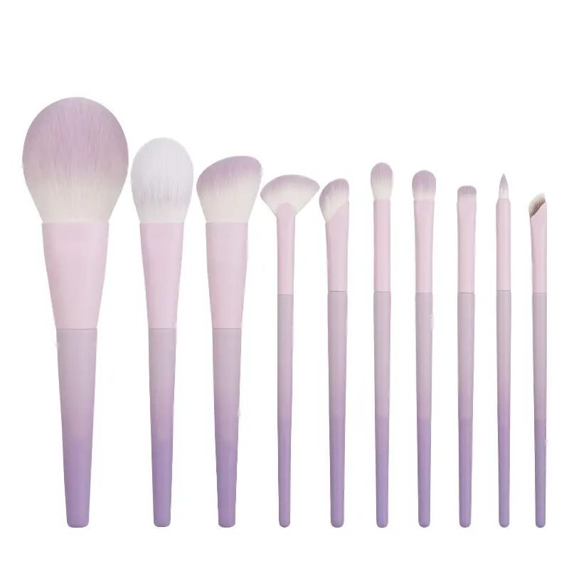 New Stella Purple 10Pcs Makeup Brush Set, Soft Nylon Bristles for Eyeliner & Nose Contour, Cute Lavender Beginner Brush Kit with Bag