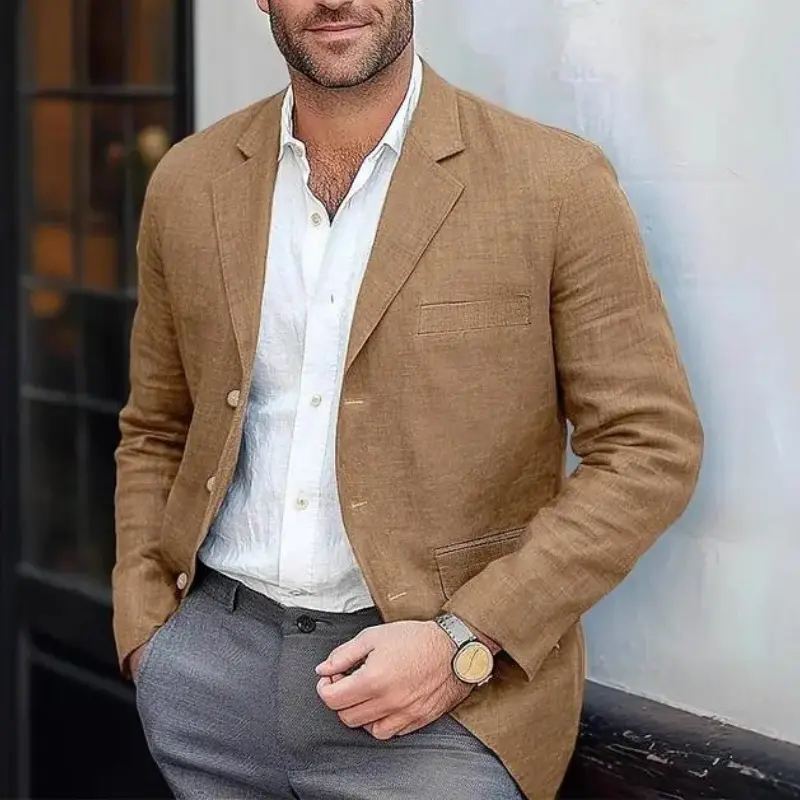 Men's Blazer Jacket Cotton Linen Sports Coats Regular Fit Two Buttons Herringbone Suit Jackets Formal Long Sleeve