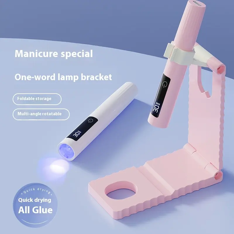 Mini portable LED nail light + stand, equipped with digital display, USB rechargeable lithium battery, compact design, suitable for home and travel, it is the perfect gift for nail care