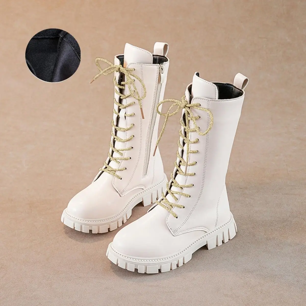 Practical Lace-Up & Side Zipper: Equipped with both lace-up closures and a side zipper, the boots offer dual convenience.The laces allow for adjustable tightness to fit different calf sizes, while the side zipper enables easy on and off without repeated lacing.