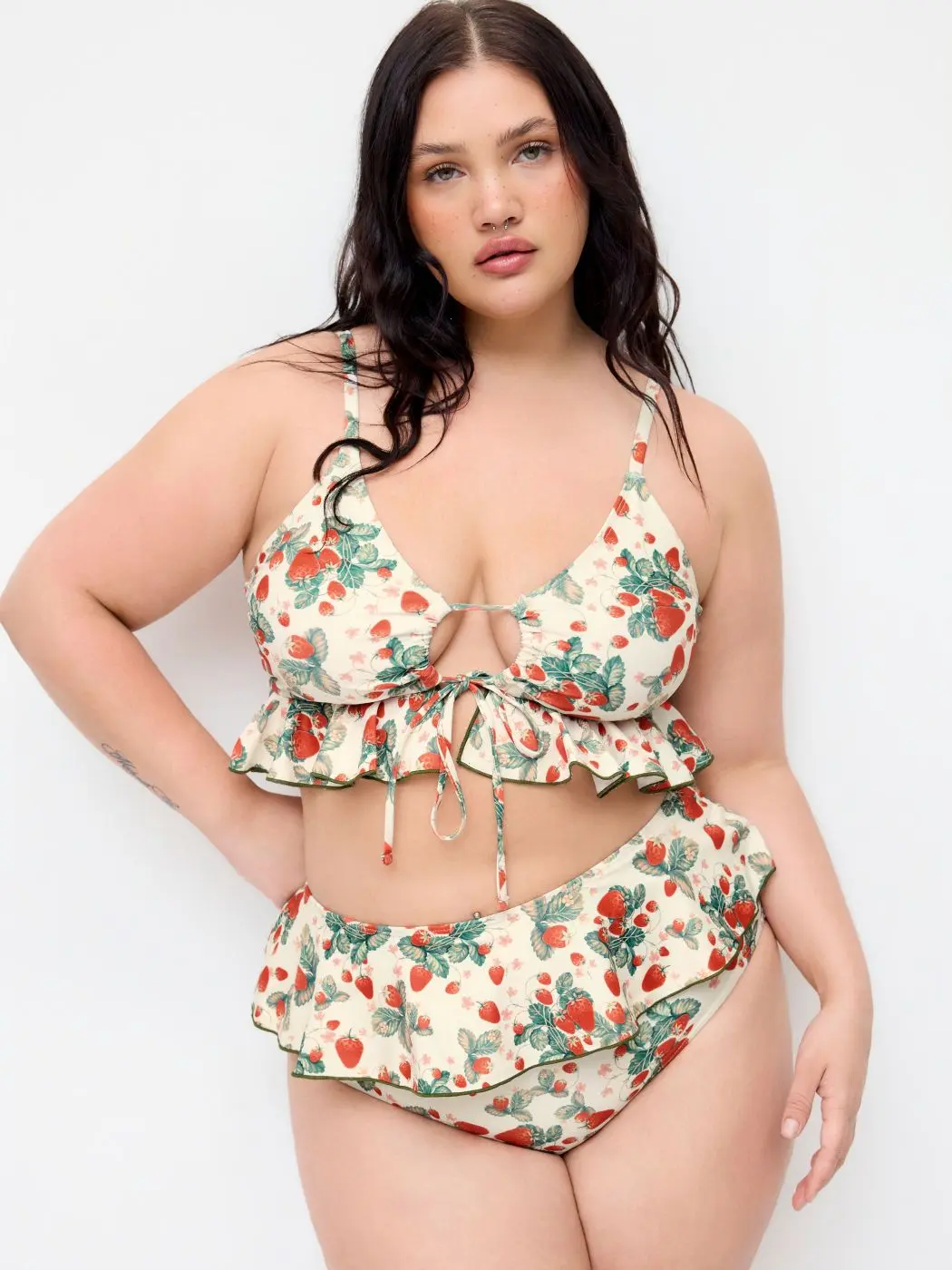 Shaping V-neck Strawberry Graphic Bracelet Full Coverage Bikini Swimsuit Curve & Plus