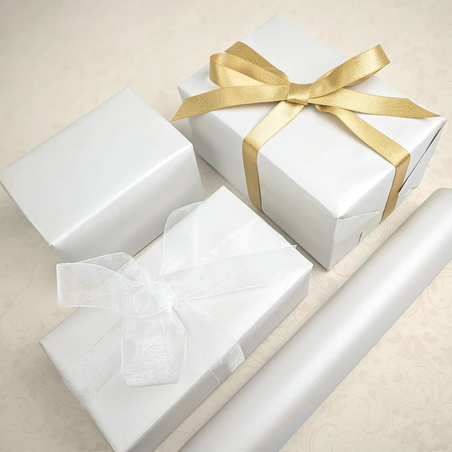 Mini Short Wrapping Paper Roll Solid Color Pearly White for Birthday, Wedding,