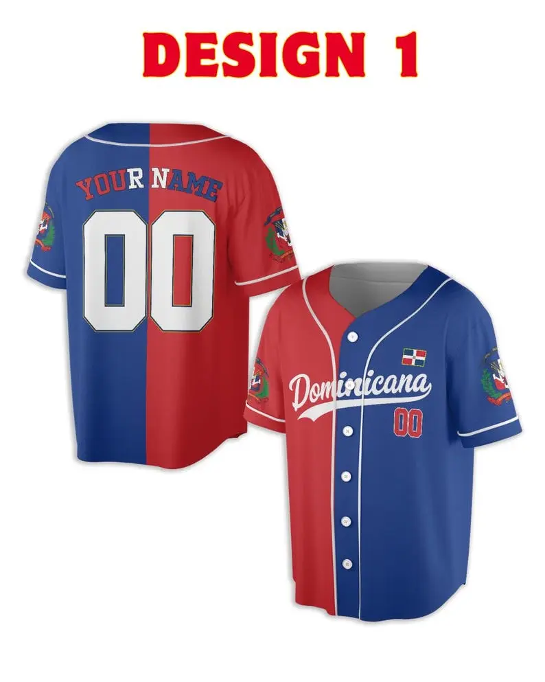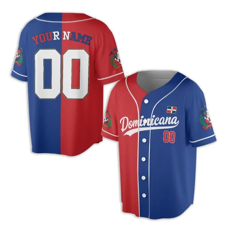 Dominican Republic Baseball Fan Jersey, Custom Name Number Button Front 3D Shirt, Red Blue Gradient, International Tournament 2026 Wear
