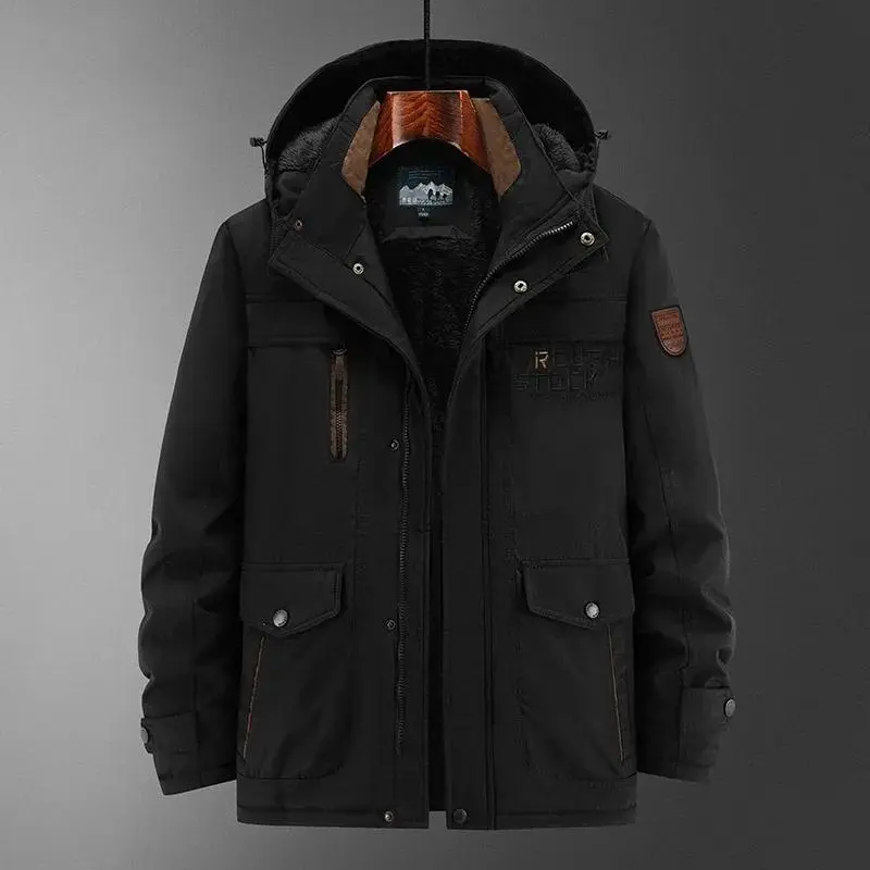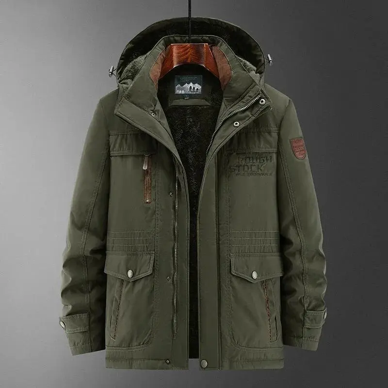 New Winter Men's Jacket High-Quality Thick Wool Cold-Proof Detachable Hooded Parka Casual Skiing Hunting Windproof Warm Coat