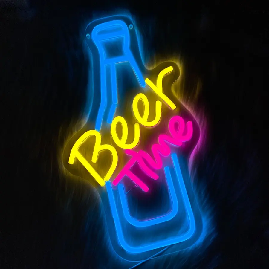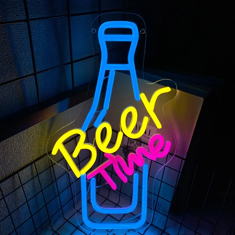 Beer Time Neon Sign Led Wall Decor Man Cave Neon Light Up Signs Wall Art for Home Room Bar Bedroom USB Powered