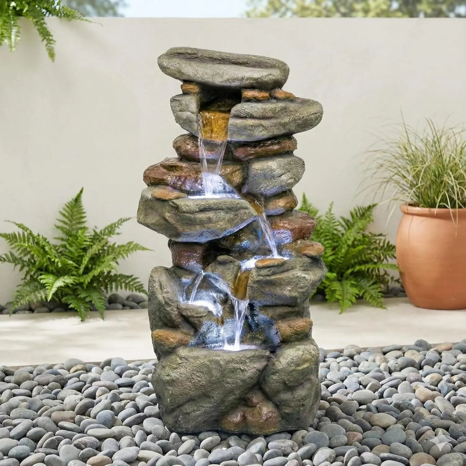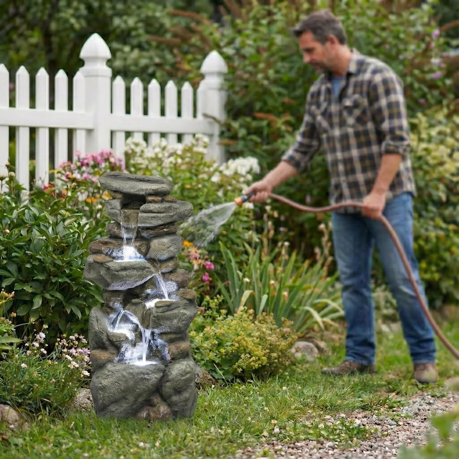 Relaxing Waterfall Fountain for Stress Relief: The gentle flow of this outdoor water fountain creates a zen-like atmosphere in patio backyards or lawn porches, masking traffic noise with natural sounds.