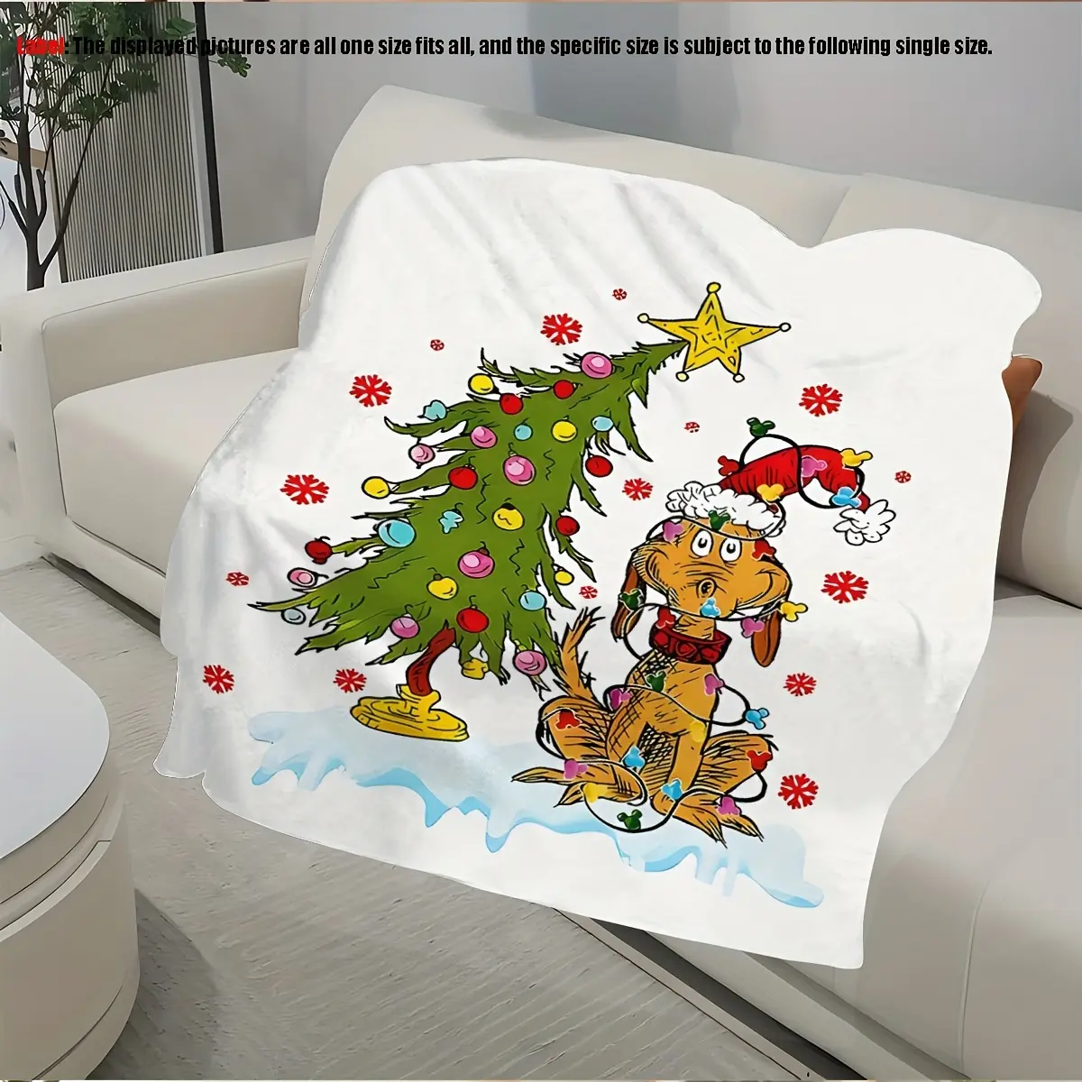 Flannel Throw Blanket, Leg Cover Blanket, Air Conditioner Cover, Cartoon Christmas Green Monster and Christmas Tree Pattern Tapestry, Soft and Comfortable Flannel Hug Blanket Suitable for Christmas Decoration, Perfect Gift Choice for Thanksgiving Decor