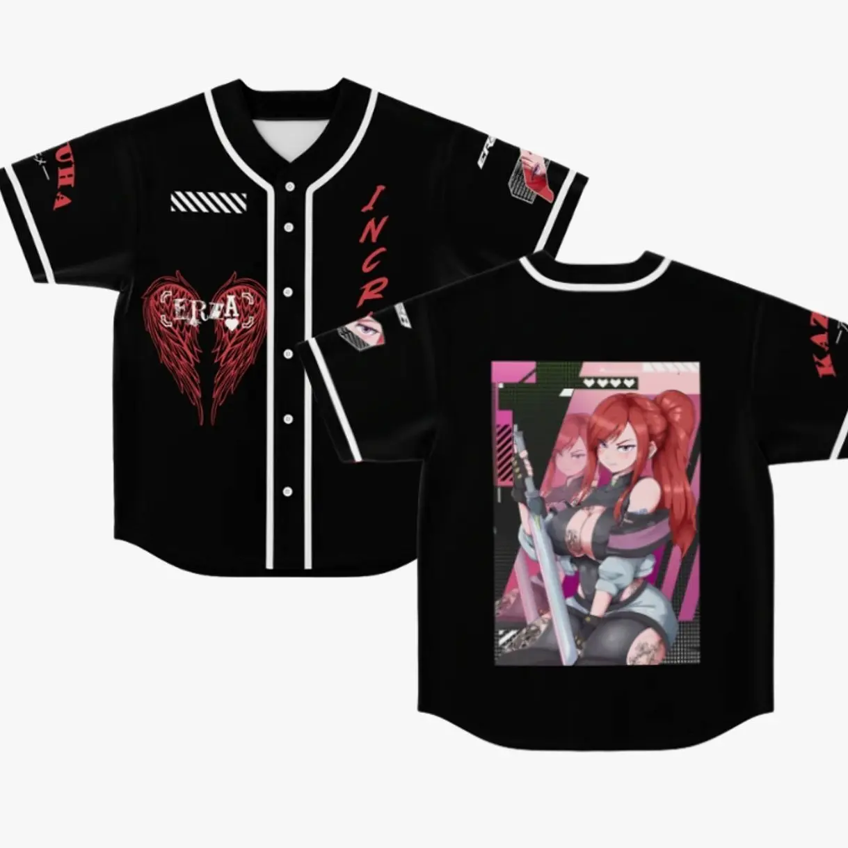 Erza Inspired Baseball Jersey – Anime Style Shirt, Unisex Streetwear Outfit, Manga Fan Merch, Oversized Fit, Trendy 2026