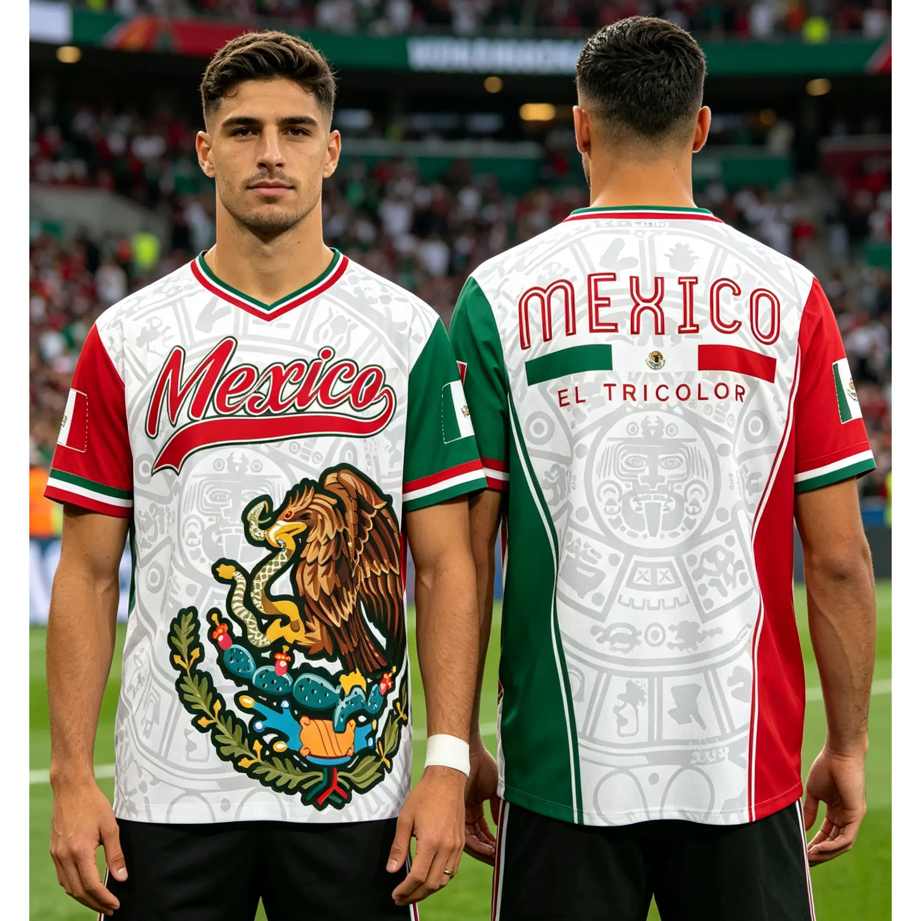2026 World Cup Mexico 3D Soccer Jersey, Eagle Crest Aztec Pattern, Tricolor Fan Shirt, Gift for Soccer Lover and Player, Game Day Outfit