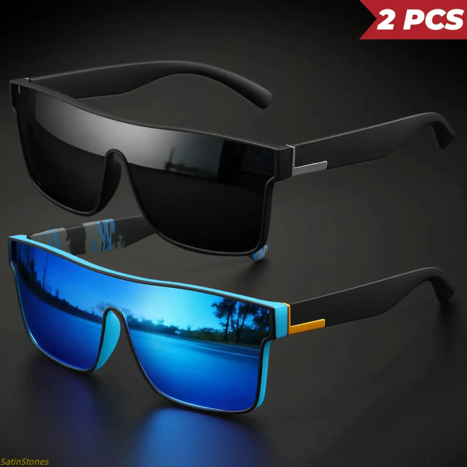 2 pairs of unisex sports sunglasses with integrated UV400 surround lenses, featuring colorful outdoor cycling options—suitable for running, driving, traveling, fishing, and everyday sun protection.