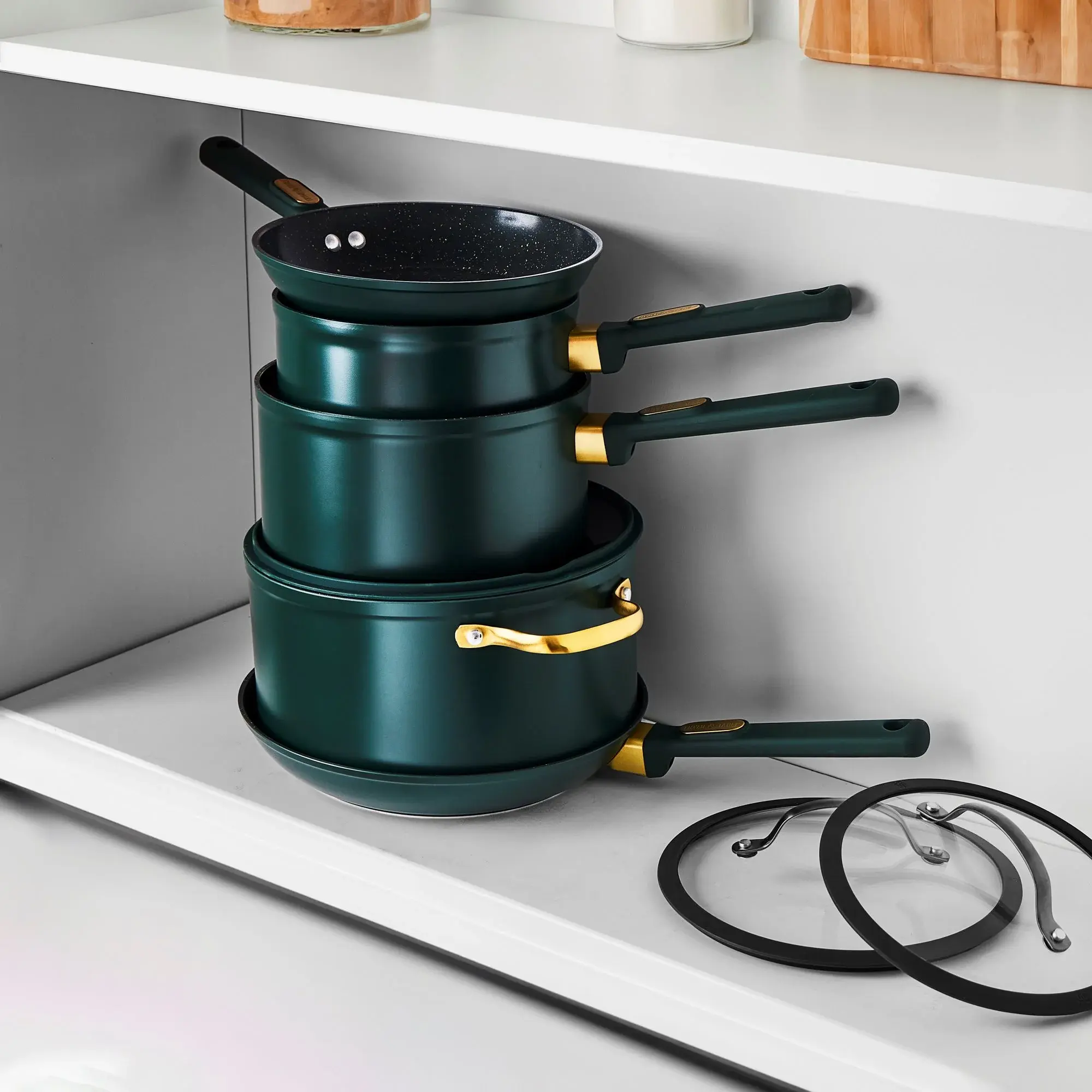 ·Essential Collection: Part of the Essential line, this Hunter Green cookware set offers excellent healthy non-toxic cooking for cost-conscious customers.