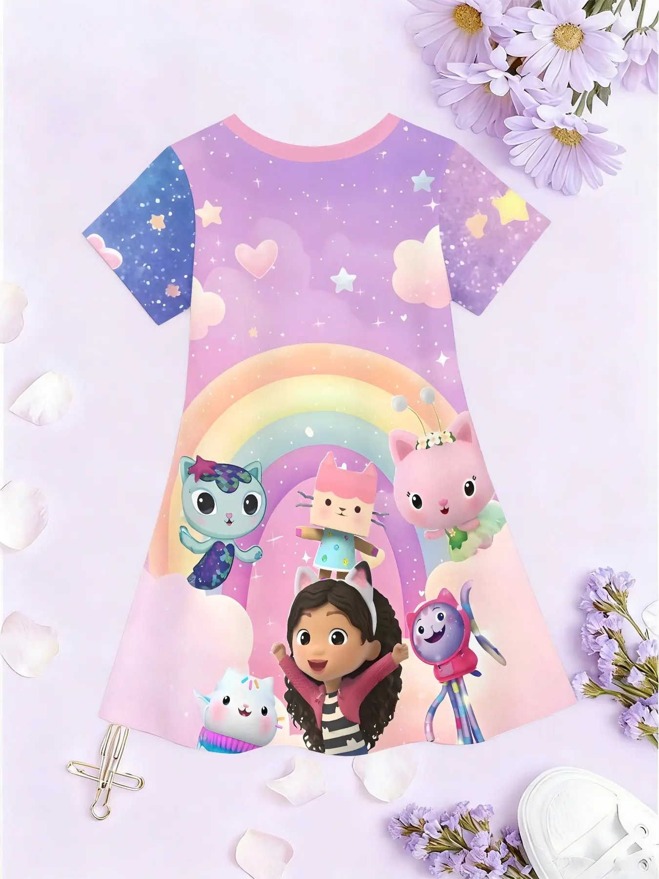 Girls' Gabby Doll House Theme Dress, Summer Fun Short Sleeve Princess Dress, Breathable Casual Dress, Birthday Gift, Holiday Gift