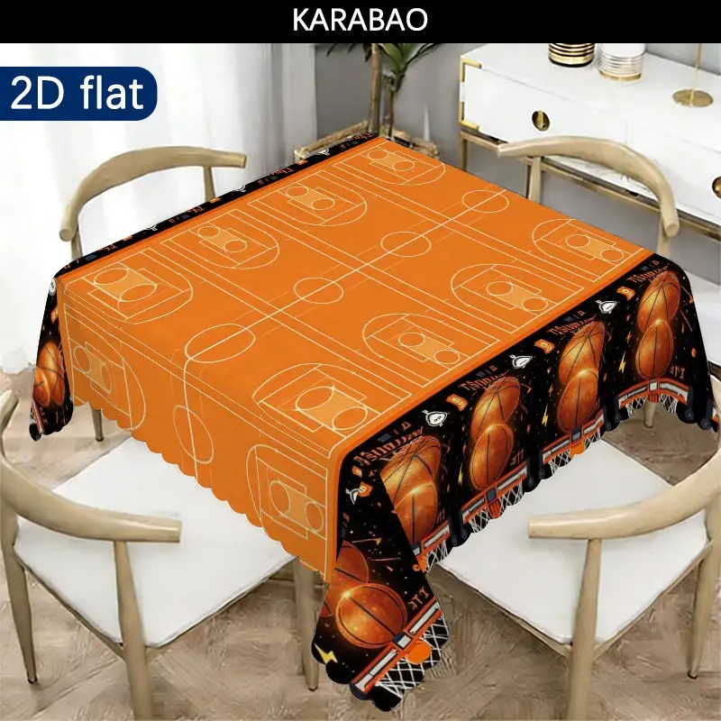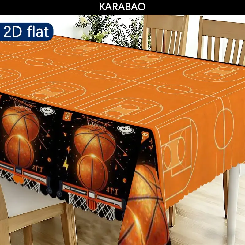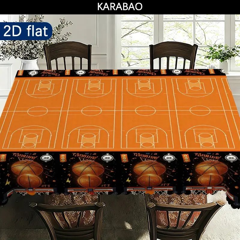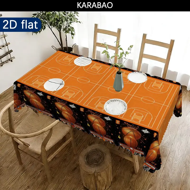 Basketball Court Pattern Tablecloth, Sports Style Design, Perfect for Dining Tables, Kitchen, Restaurant, Indoor Outdoor Use