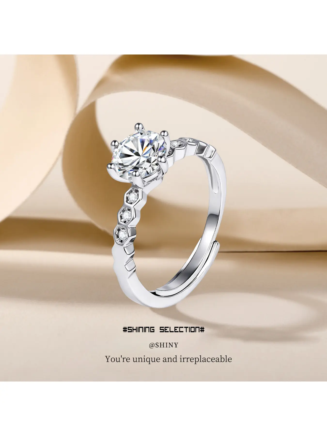 Classic six-prong imitation moissanite adjustable ring for women, high-end copper alloy, simple and stylish, popular cross-border foreign trade item