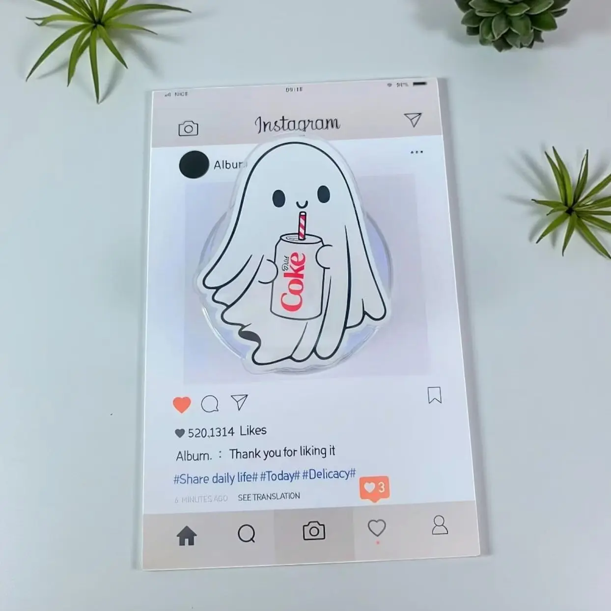 Ghost Drinking Soda MagSafe Phone Grip: Cute Ghost with Diet Cola Magnetic Phone Holder, Kawaii Gift for Holiday, Phone or Kindle Popgrip