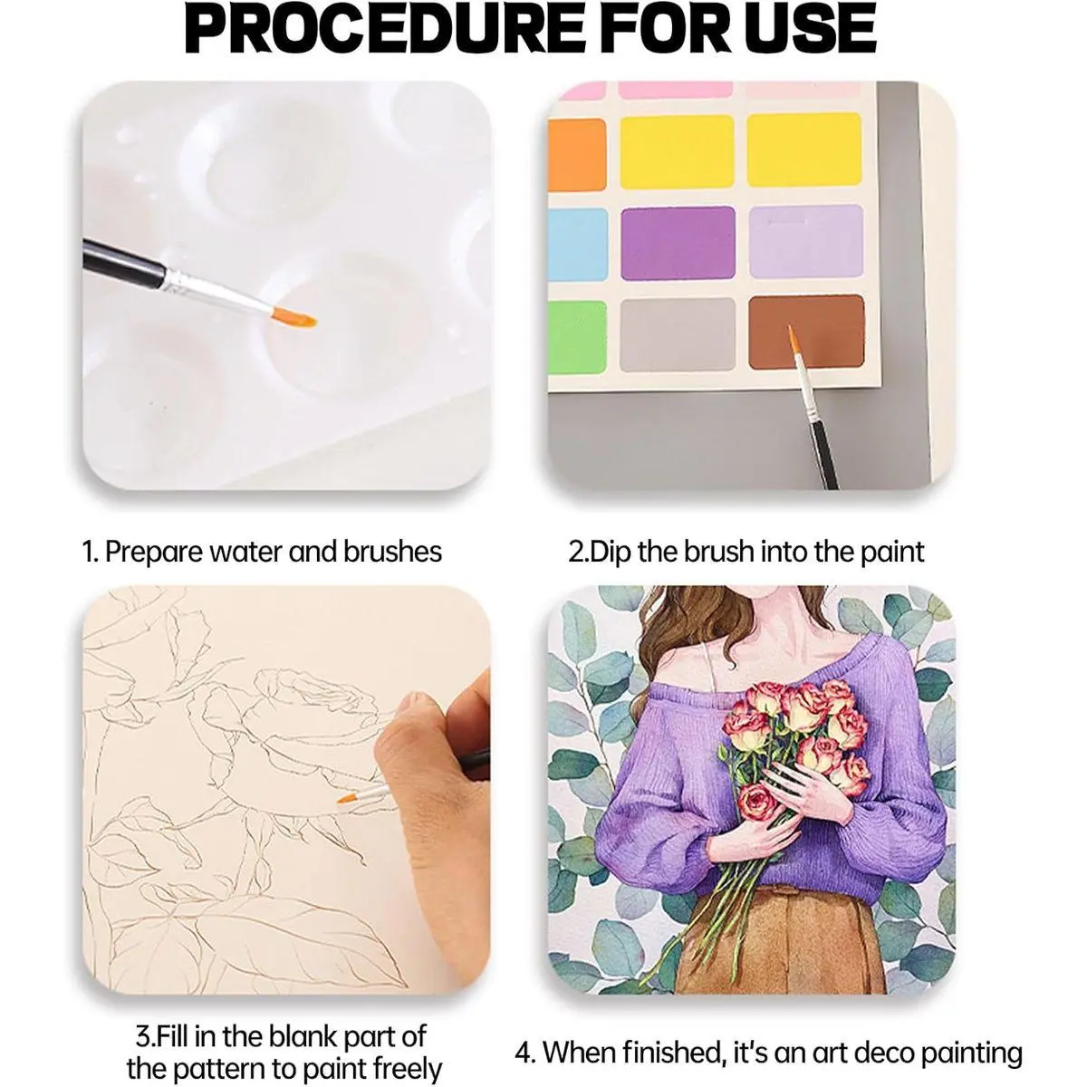 Complete Set: Each watercolor book includes 12 colors and a brush, making it a convenient all-in-one solution for water coloring. No need to purchase additional supplies.
