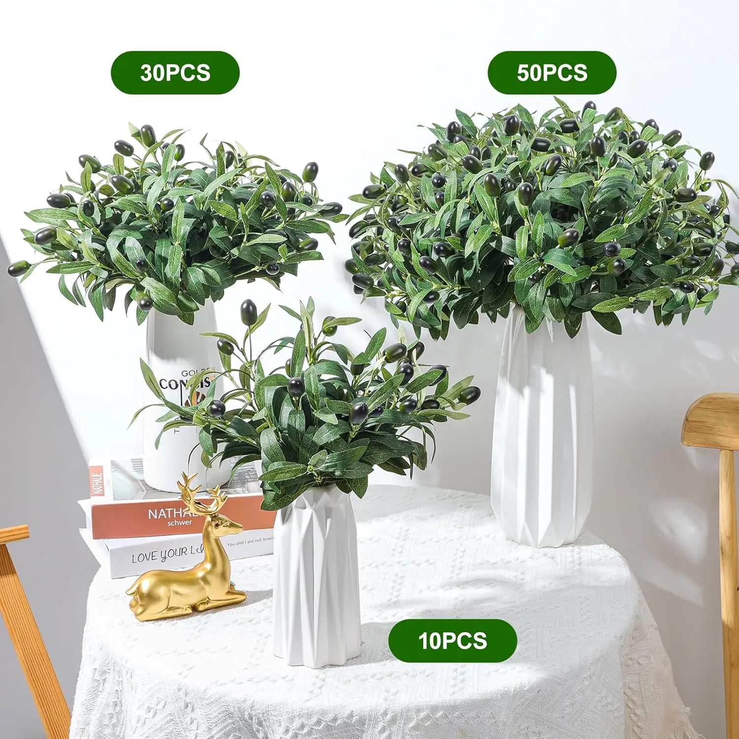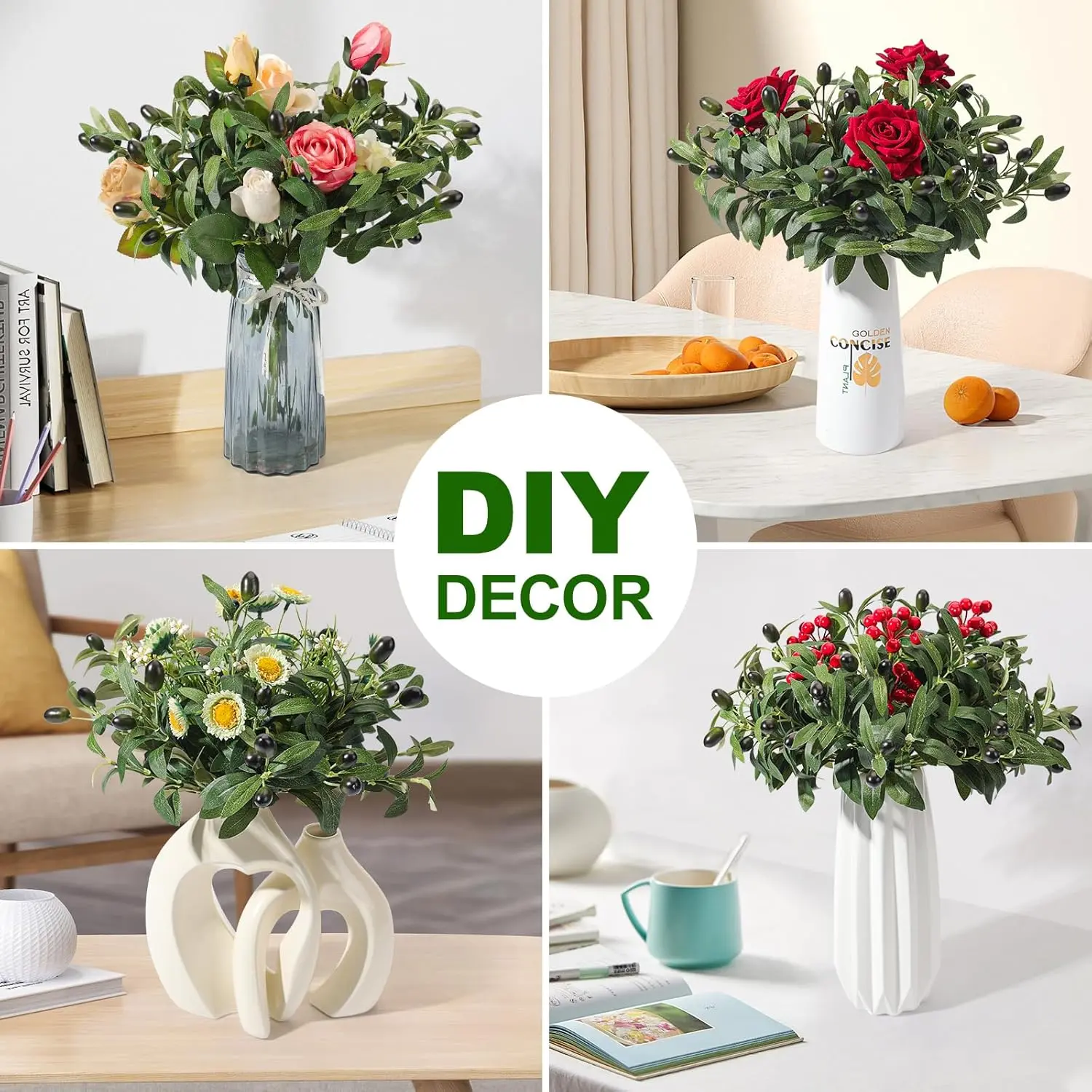 Faux Olive Leaves Stems 10" Tall Artificial Plants Olive Tree Branches for Small Vase Tabletop Greenery Decor for Home Office Wedding Party