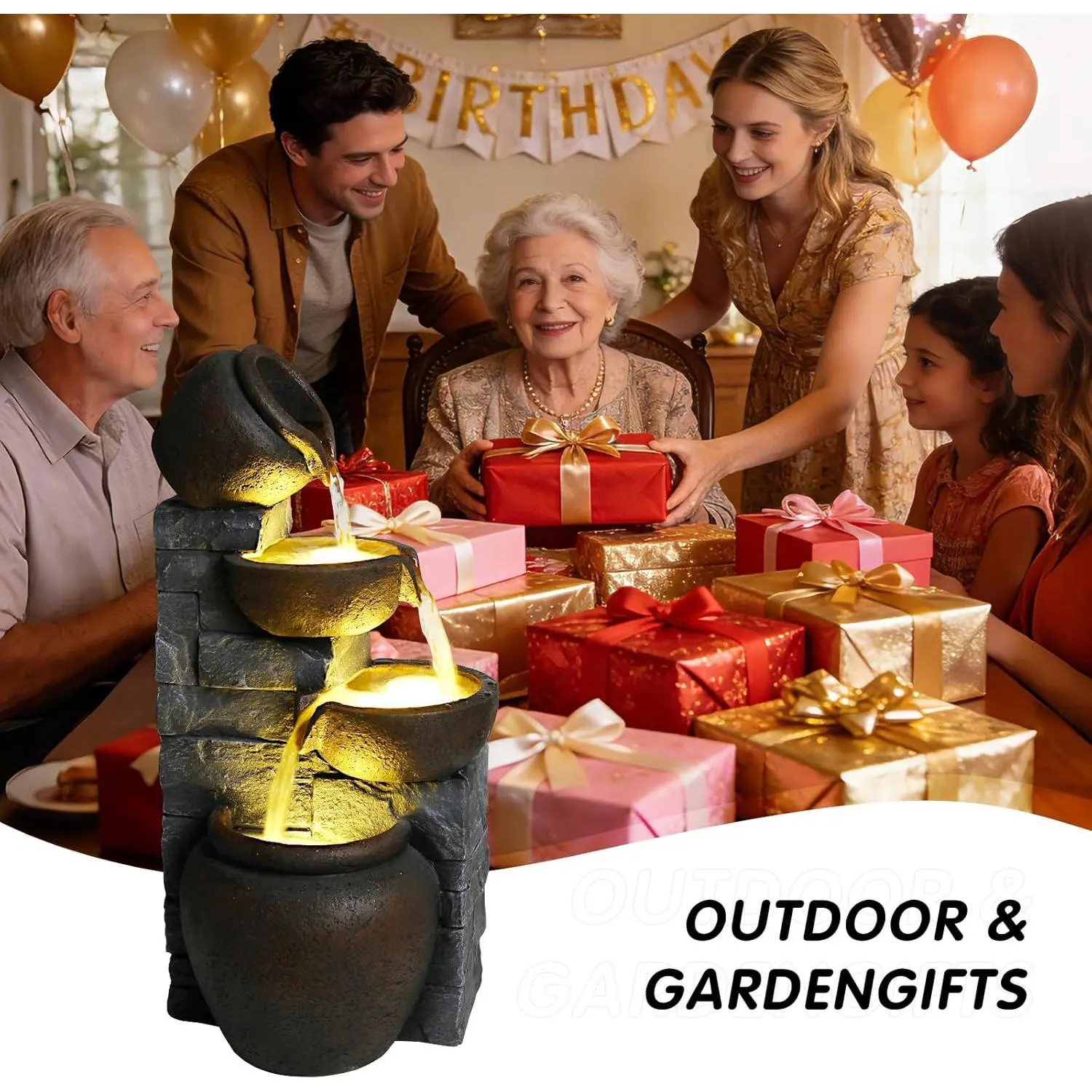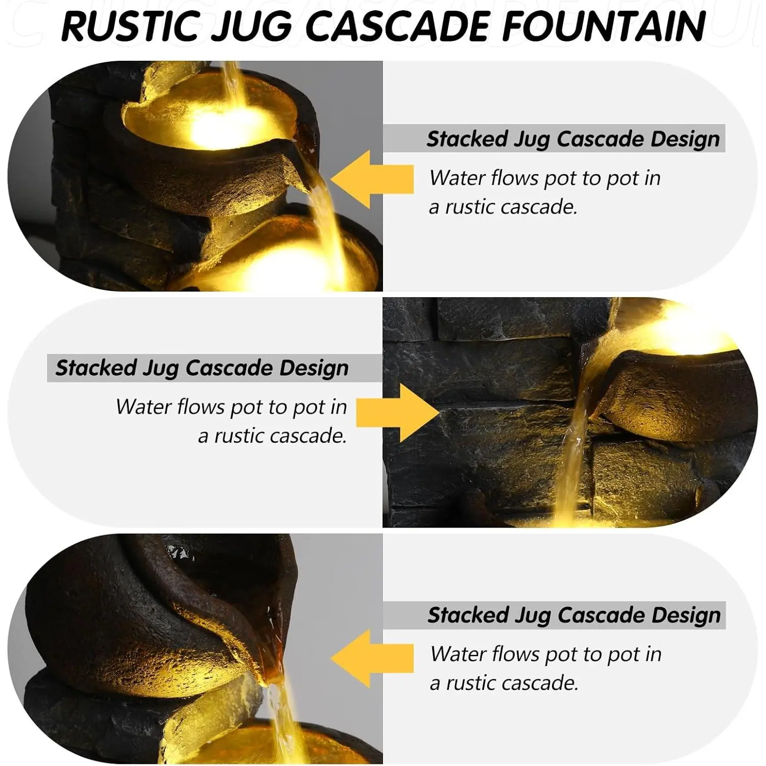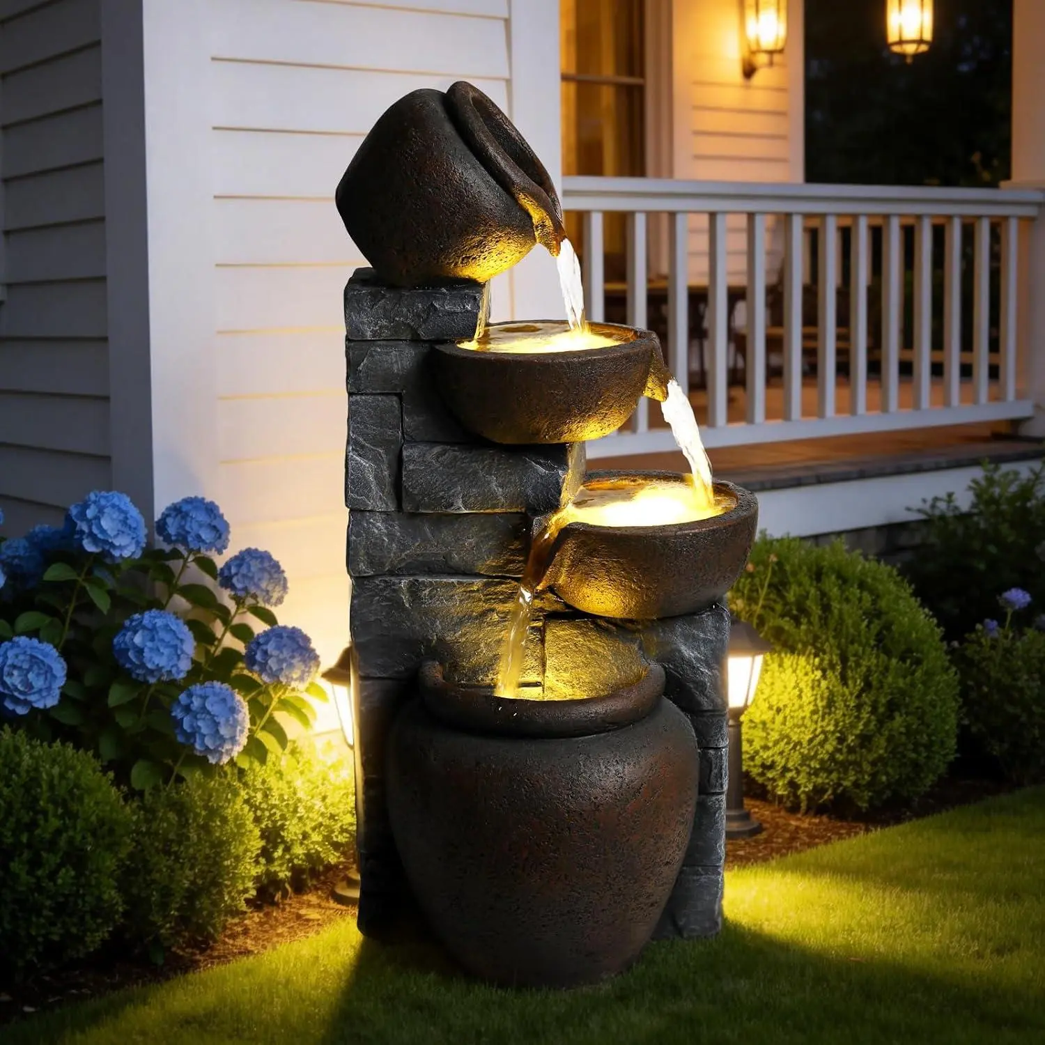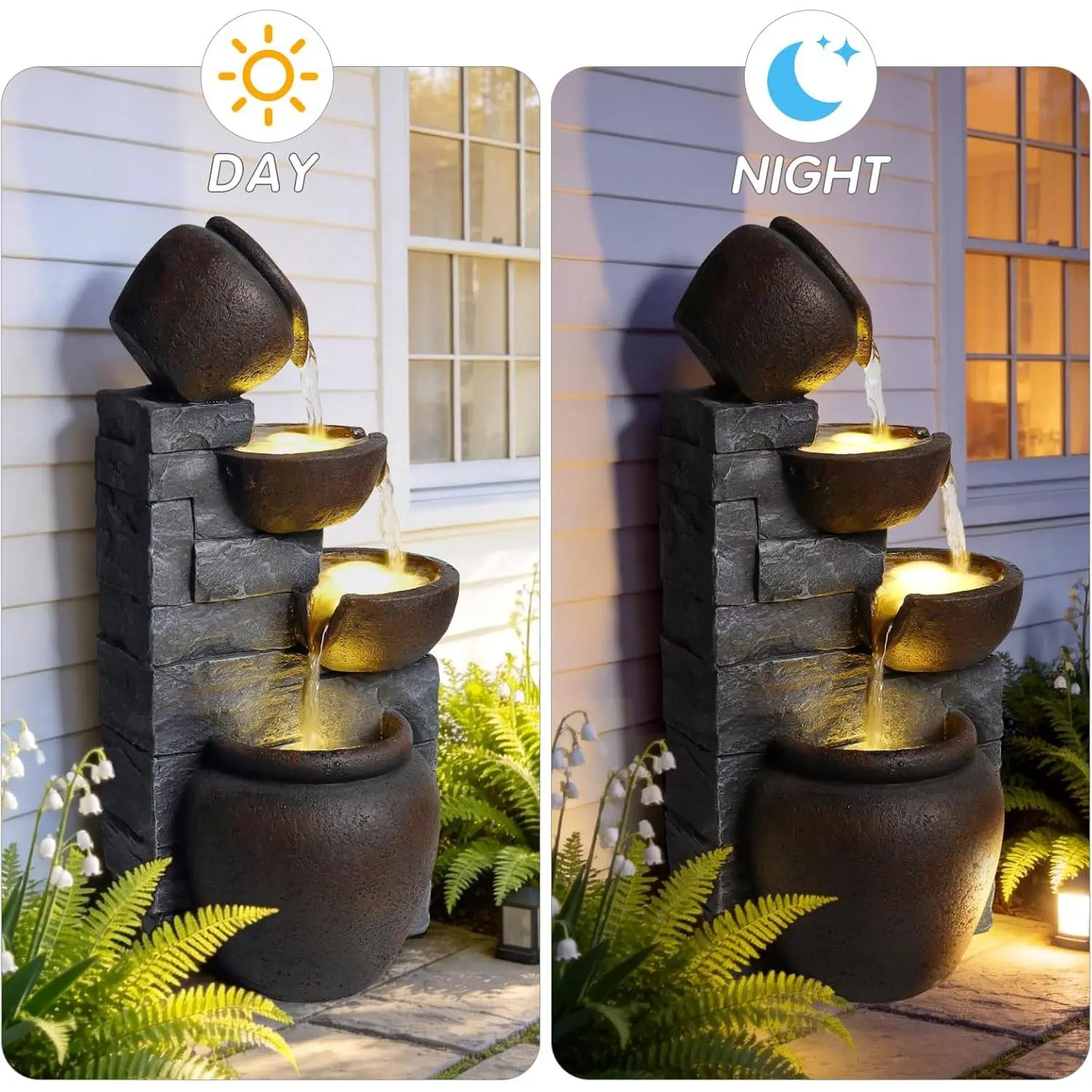 Premium Resin Outdoor Water Fountain 12.4" L x 9.6" W x 25.6" H, Cascading Cup Tabletop Waterfall Fountain, Modern Garden Water Feature for Patio, Yard, Indoor & Outdoor Decor