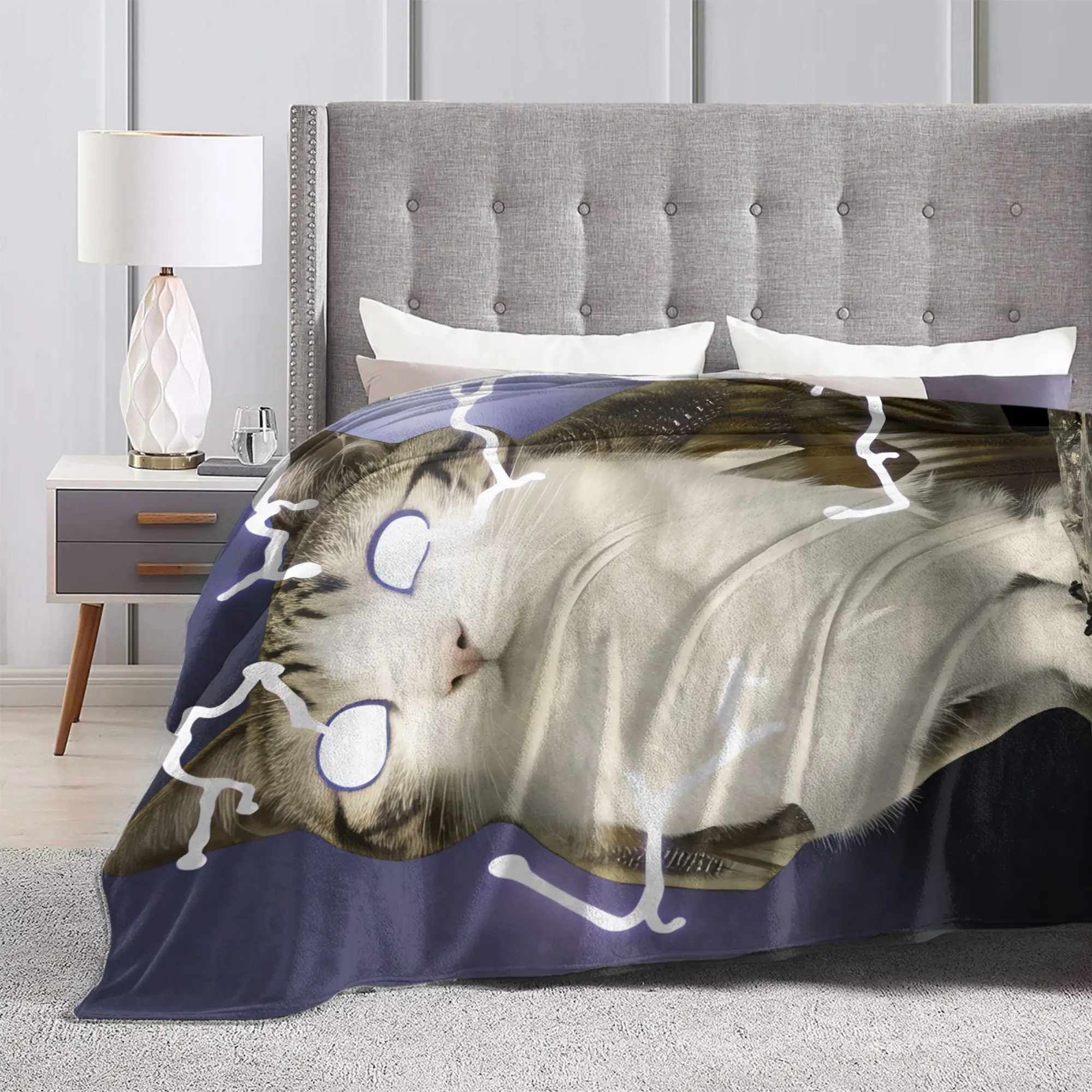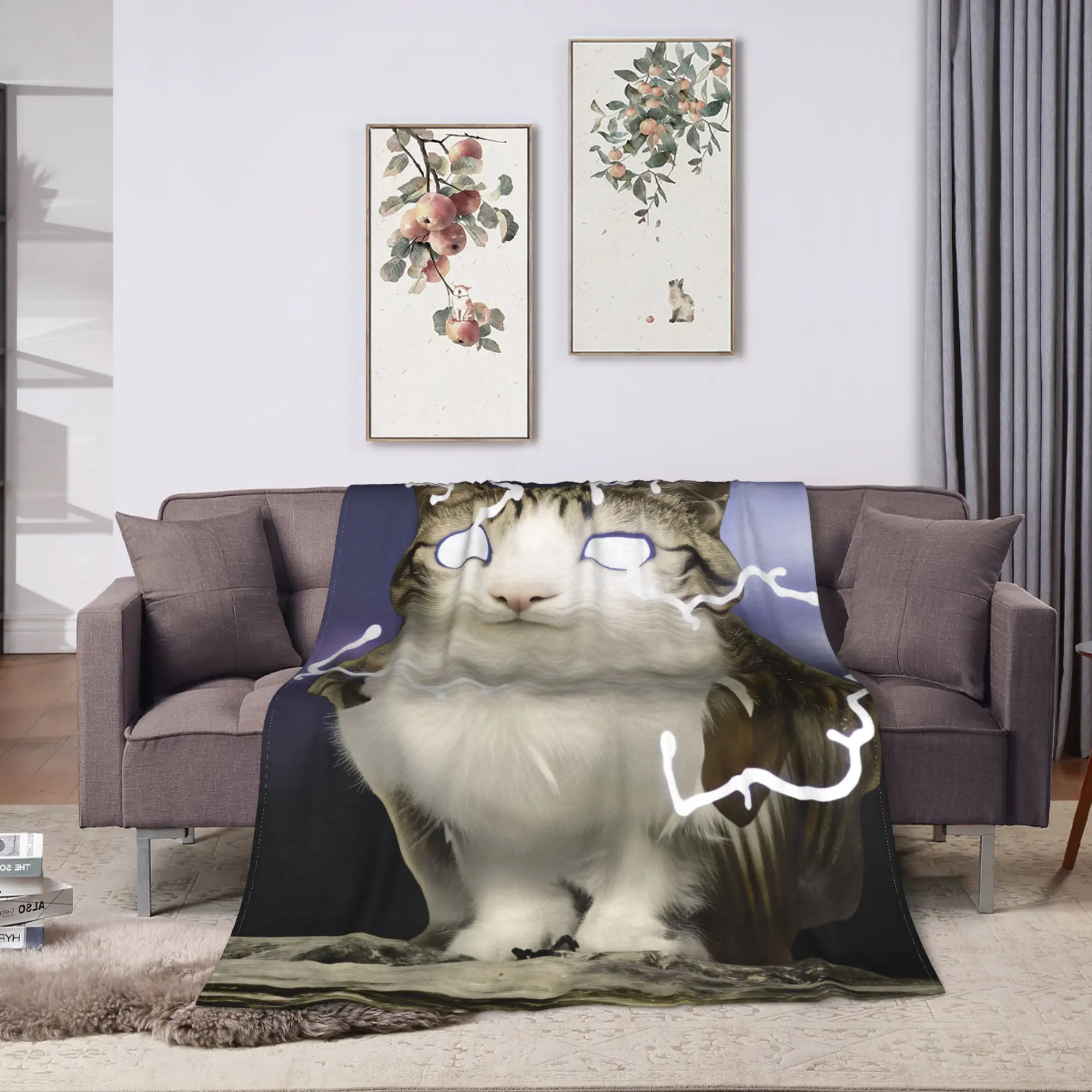 Meowl Cat Owl Electric Storm Flannel Blanket Pet Bedding Throw Comfortable Funny Couch Chair Travel Bedspread Bed Cover Soft Warm Flannel All Season Multi Size Weird Animal Gift Idea