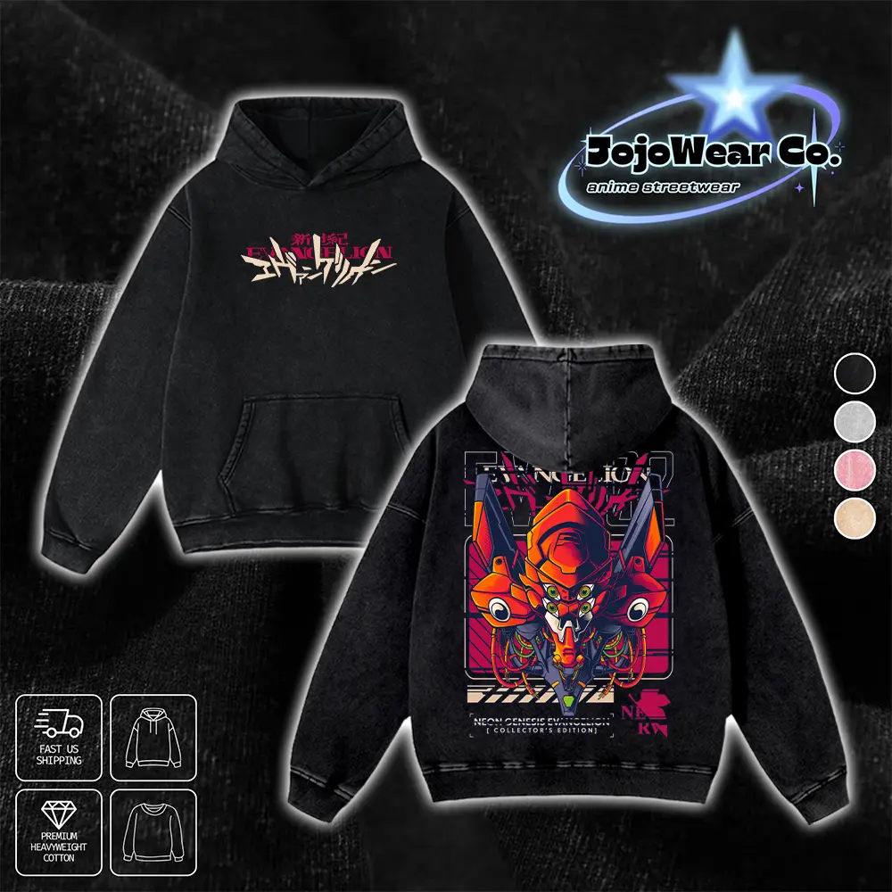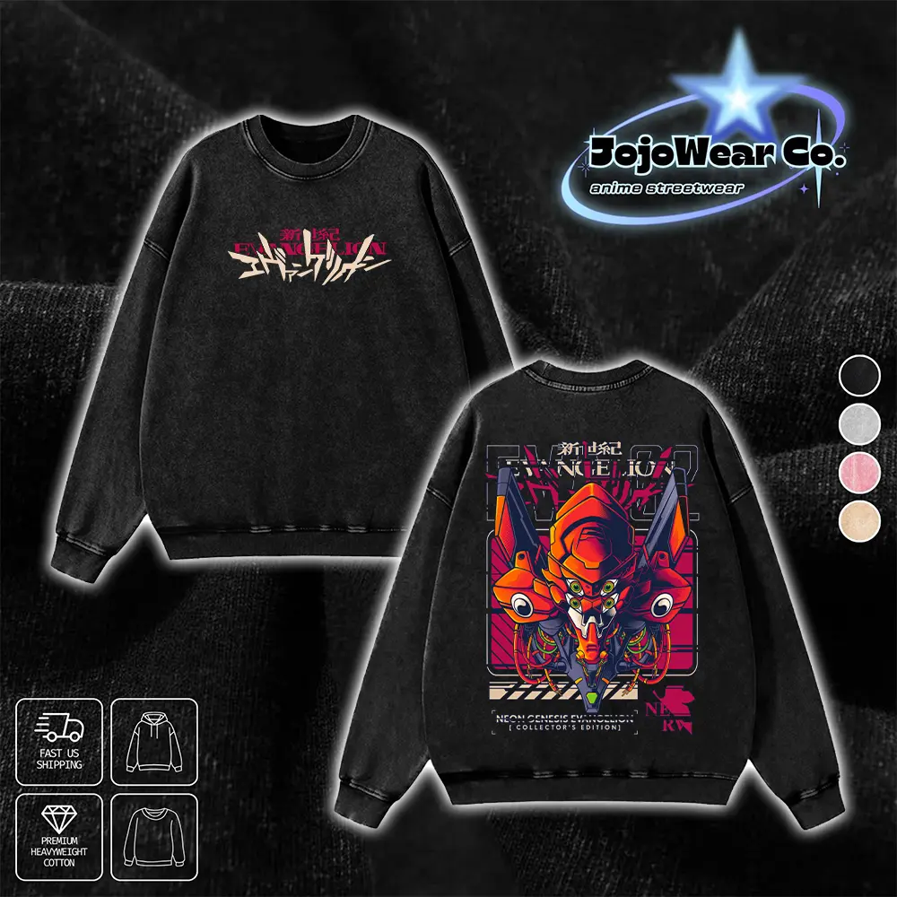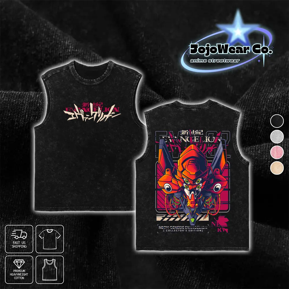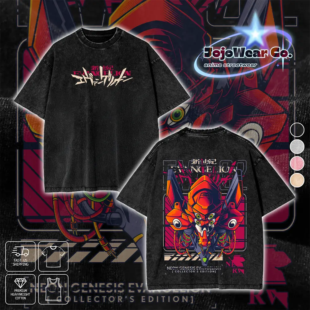 Vintage EVA Unit 02 Neon Genesis Evangelion Graphic T-shirt Hoodie Crewneck Sweatshirt Tank Top Oversized Streetwear 100% Premium Cotton Fabric Tee Unisex Double Printed Washed Top Gift For 90s Anime Manga Fan Menswear Apparel