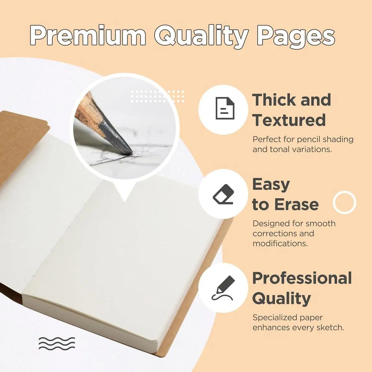 Premium Sketch Paper for Artists: 224 ivory pages of thick, textured sketch paper provide a perfect surface for pencil shading, smooth erasing, and detailed tonal variations, enhancing every artistic creation