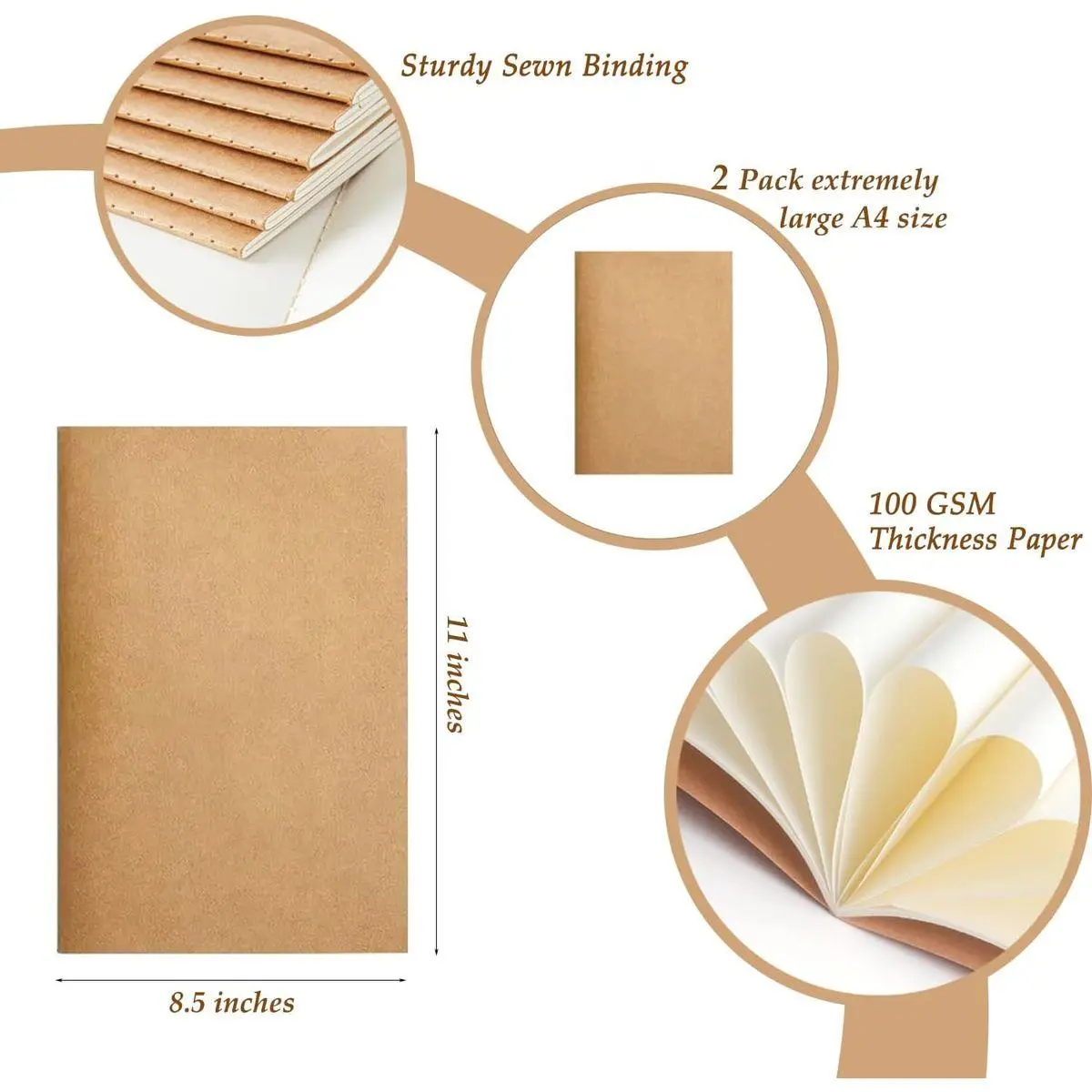 Value Set: You'll receive 2 Kraft paper notebooks, 2 PCS A4(8" x 11") notebooks. Each notebook contains 60 pages/30 sheets, offering versatile uses for all your needs.
