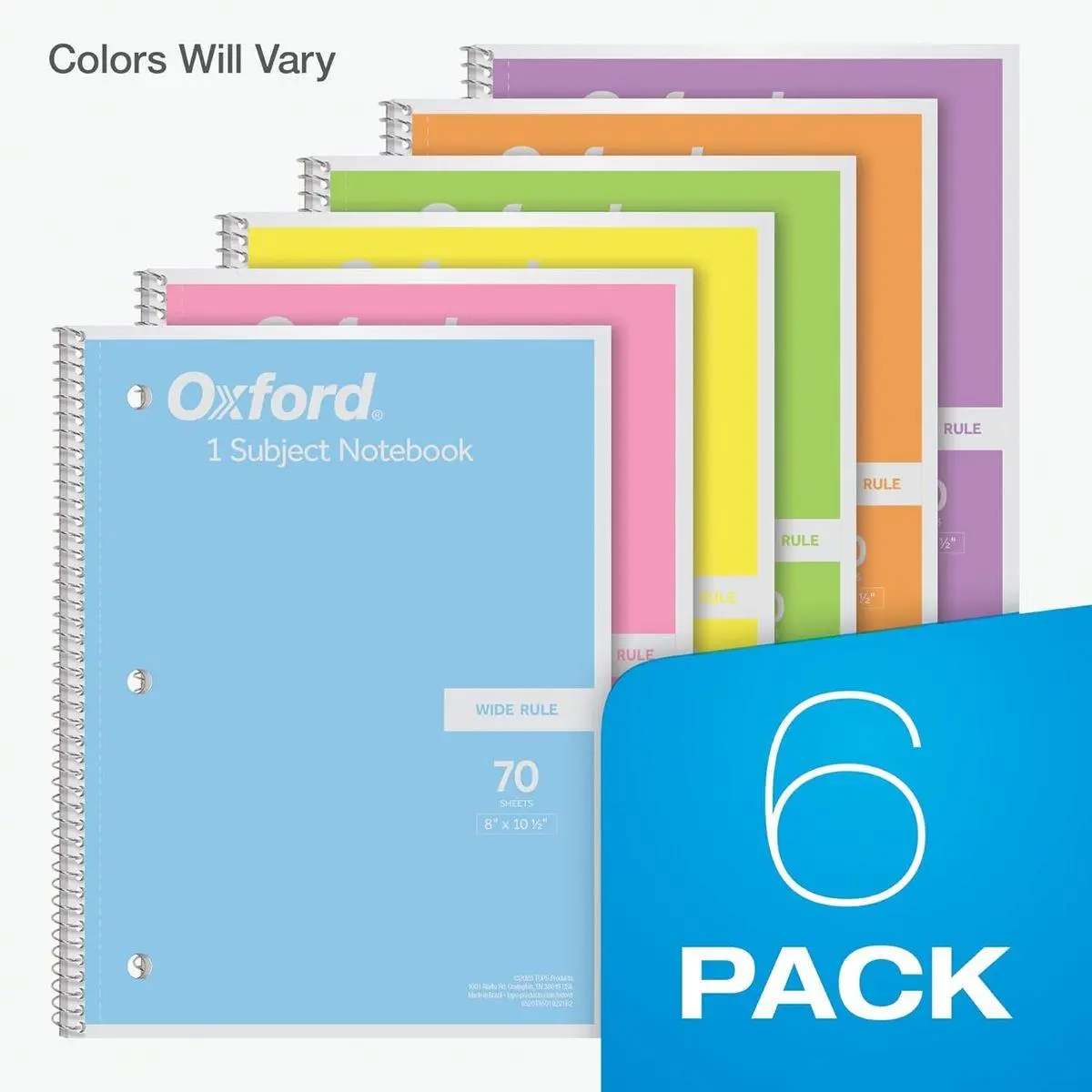 Save by the pack: Get a 6 pack of 1 subject notebooks with 70 sheets of wide ruled paper with pastel covers; a stock-up staple for your school supplies list or home schooling; cover colors vary