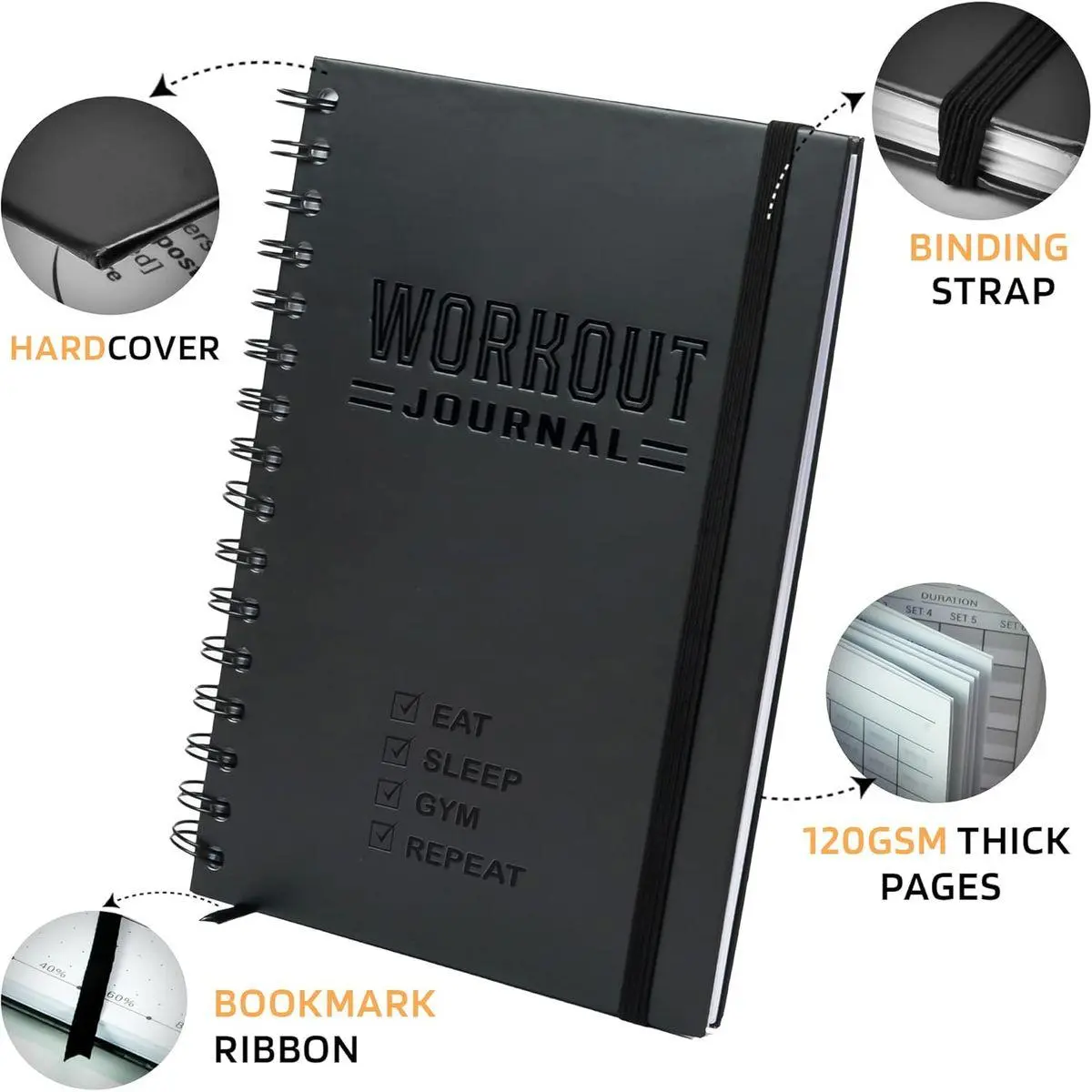 CAREFULLY CRAFTED - Made with functionality and also long-lasting durability in mind with size 5.7x8.3 in, this fit log journal is tough enough to withstand the rigors of the gym floor, running trail and even the kitchen! Premium thick 120gsm pages and a sweat and tear-proof outer match your grit!