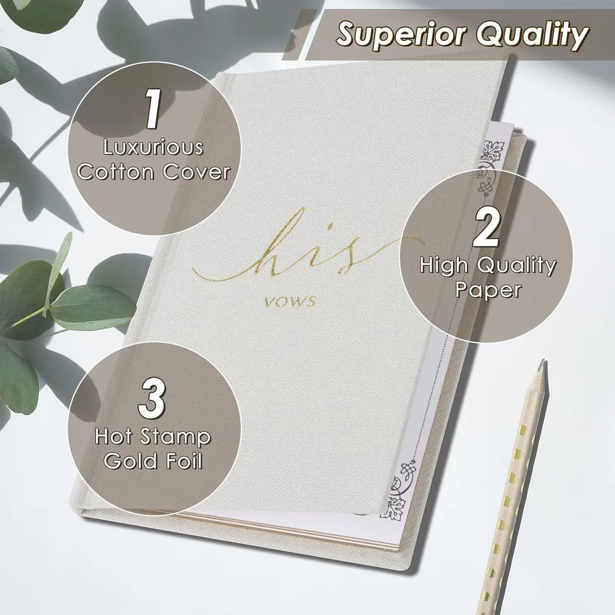 【Thick & Sturdy】Each gold foil wedding vows book has 56 lined pages (28 sheets), made out of 120 gsm paper, thick enough to not bleed ink or show the writing on the next page. And the hard covers are made with a good quality linen, durable and pretty way for couples to save their vows