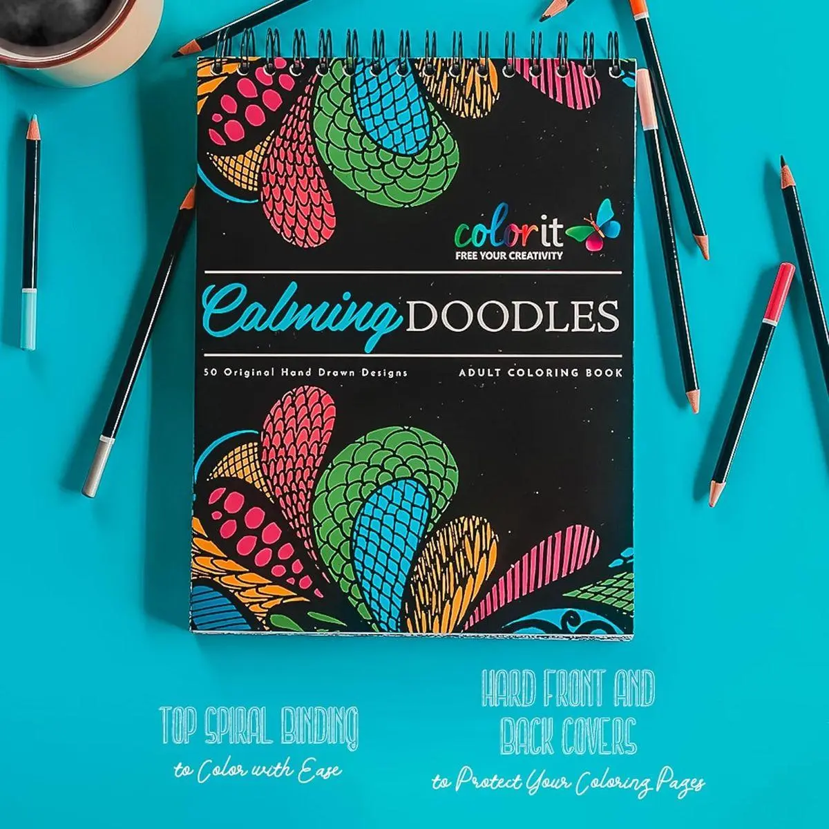 Color Anywhere. Hardback covers let you lay your adult doodle book flat on many surfaces, from your desk to your lap. Bring your spiral coloring book on the go. Color everywhere inspiration takes you.