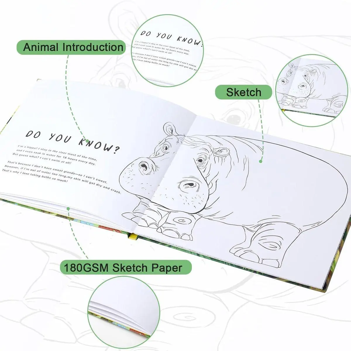 Journey Into An Educational Animal Adventure:Explore a captivating collection of detailed animal illustrations, some paired with interesting educational facts. This coloring book for adults and families provides a delightful blend of artistic expression and wildlife discovery, making learning engaging.