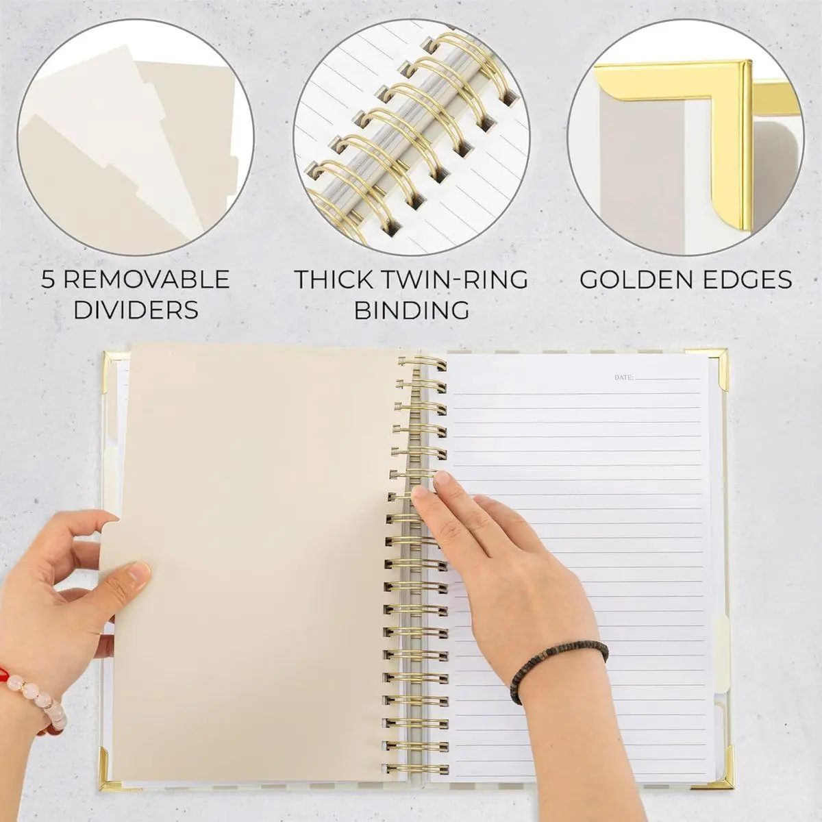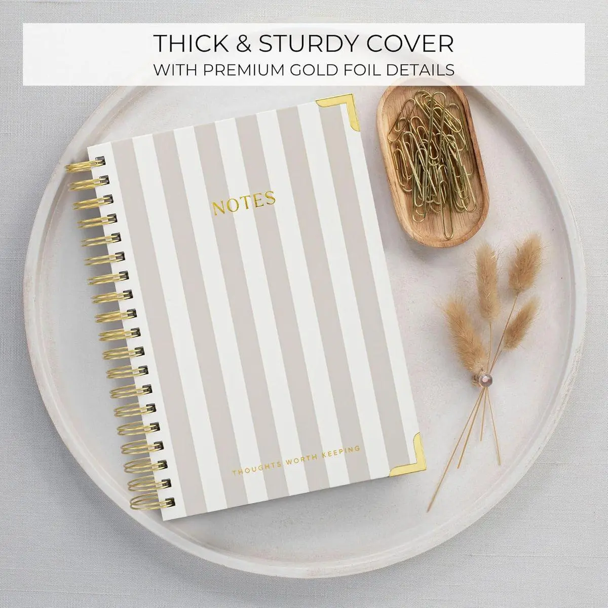 Aesthetic Design That Fits Your Flow: Chic stripes in a timeless beige and elegant gold foil accents - a cute college-ruled notebook that means business, and looks fabulous doing it! The work notebook with tabs keeps you organized, classy and perfectly on point