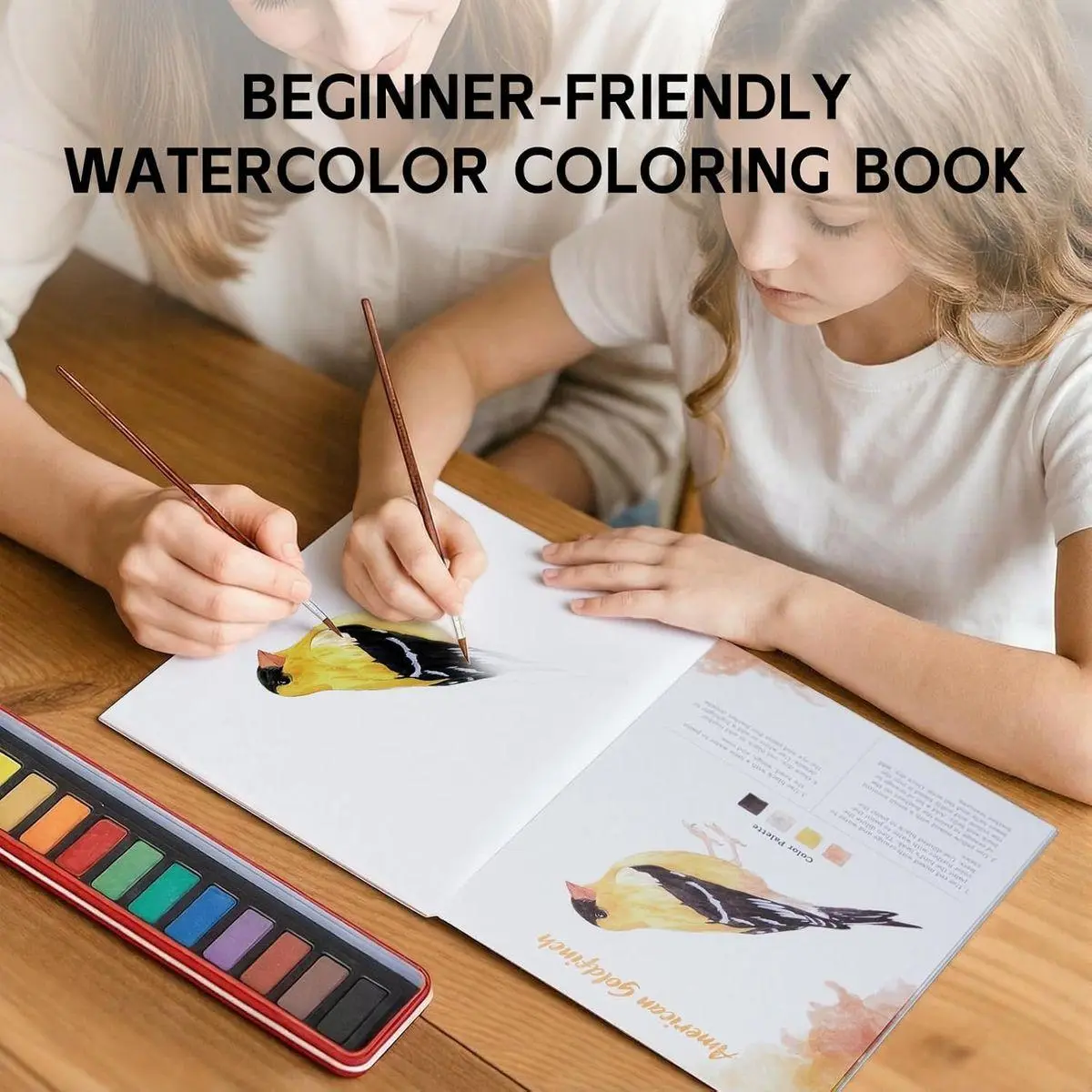 【Watercolor Paint Set】This beginner-friendly watercolor workbook includes 12 full-color bird examples with illustrated sketches, 12 watercolor paints, and 2 brushes. It also comes with step-by-step instructions, making it a fun and easy way to practice your painting skills