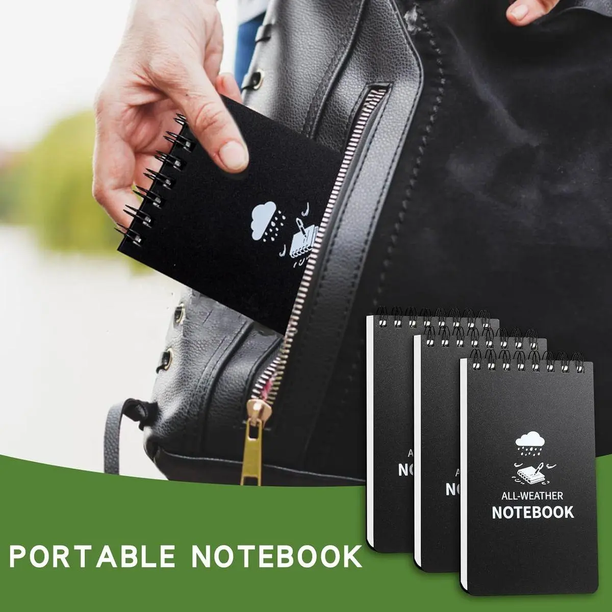 Weatherproof Notebook: What to Write with? Adopting a waterproof PVC cover and waterproof paper. On rainy days, use a pencil or an all-weather pen, and your notes will stay intact. When the paper is dry, ballpoint pens and permanent markers work well