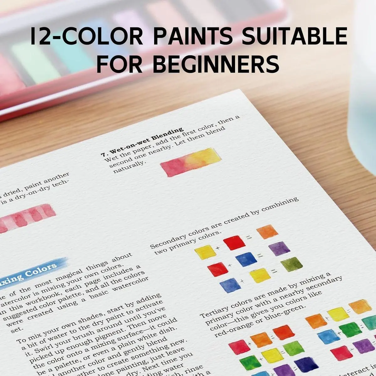 【Watercolor Paint Set】This beginner-friendly watercolor workbook includes 12 full-color bird examples with illustrated sketches, 12 watercolor paints, and 2 brushes. It also comes with step-by-step instructions, making it a fun and easy way to practice your painting skills