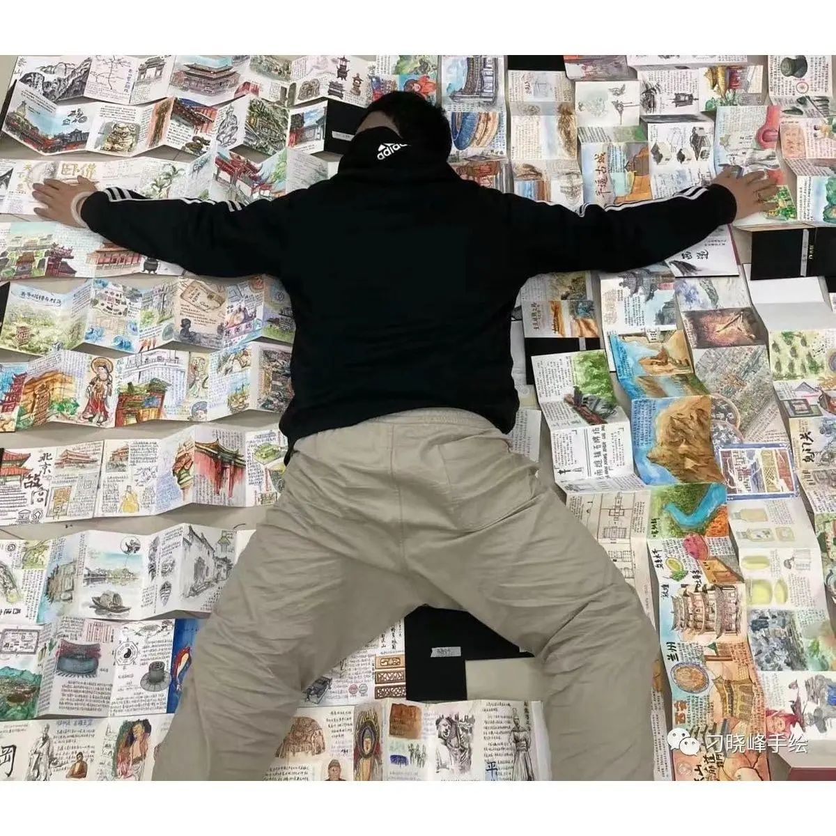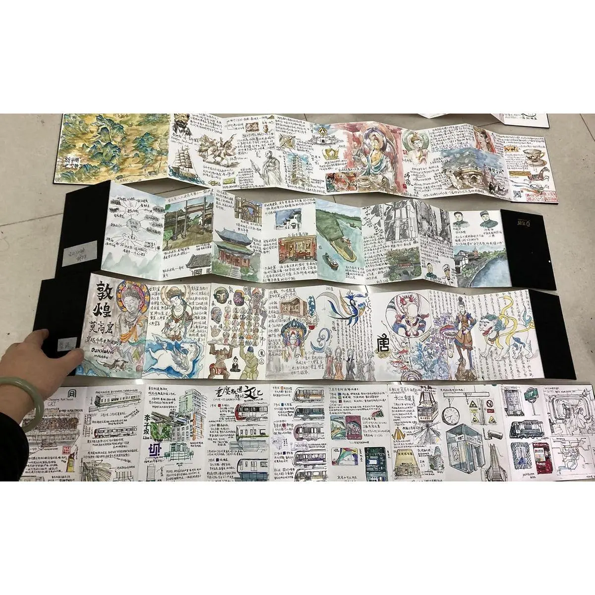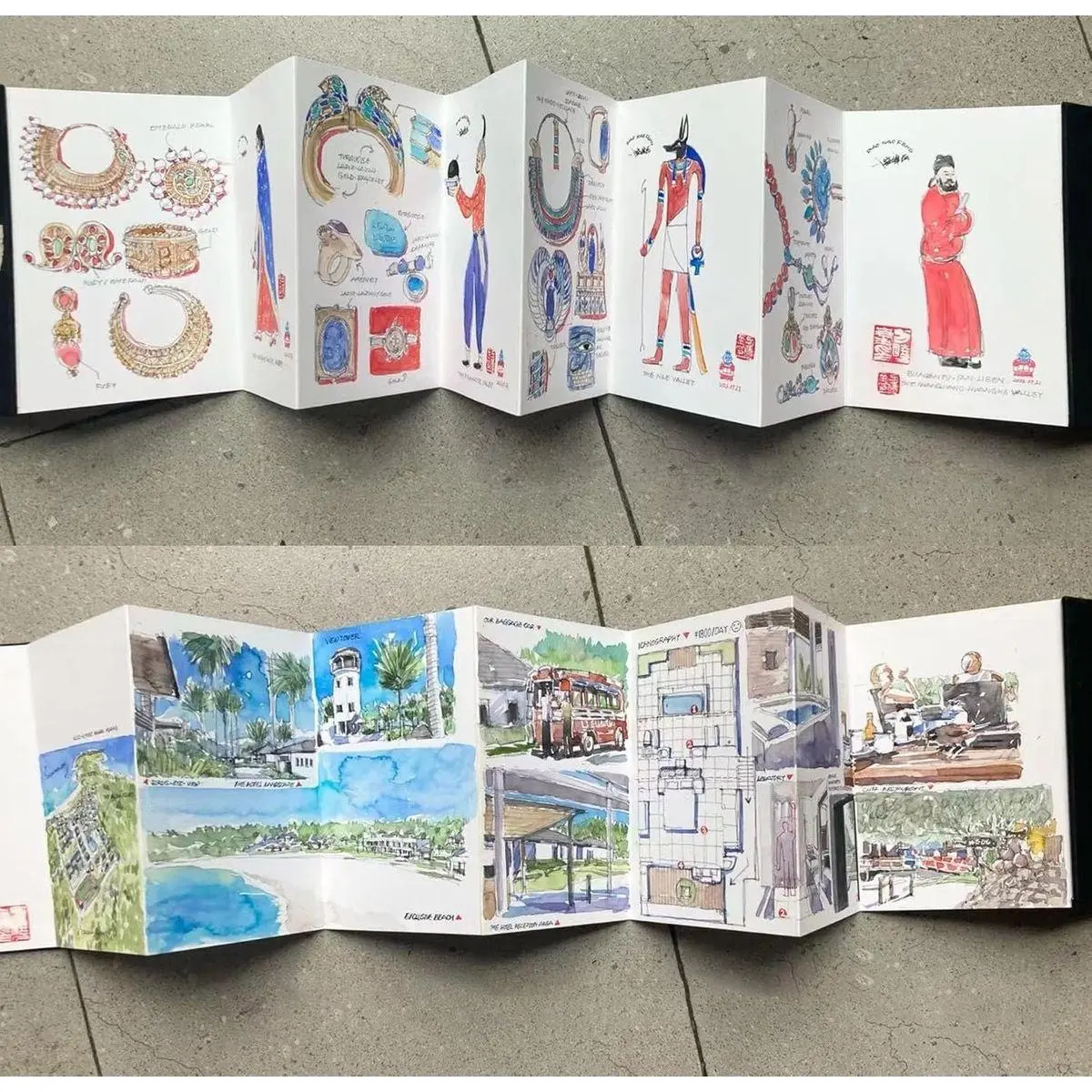 This notebook features an accordion-fold design, offering eight panels on each side.