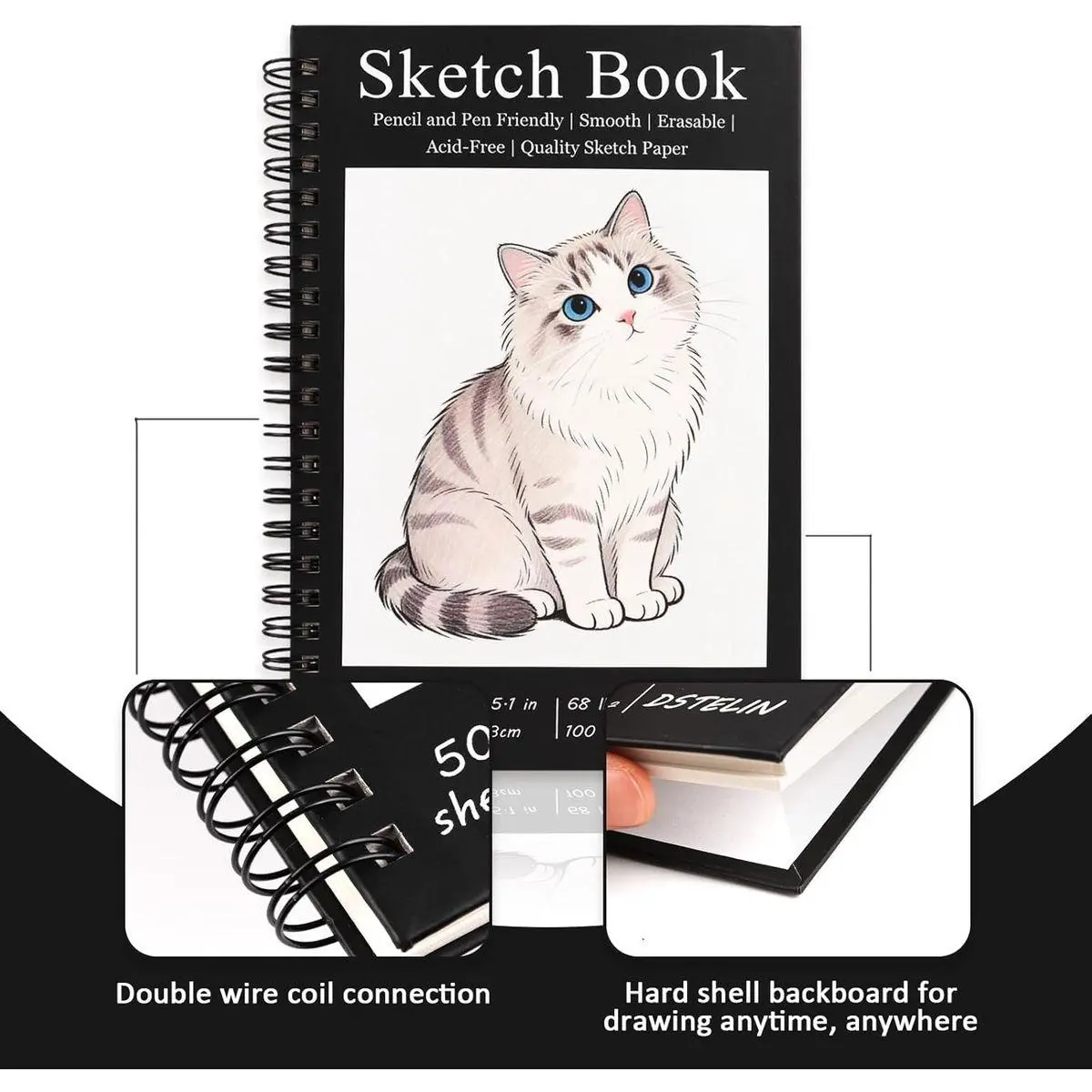 Tough Hardcover for On-the-Go Creativity: A sturdy black hardshell cover shields inner pages from bending and tearing, while also doubling as a stable drawing surface—ideal for travel, school, outdoor sketching, or daily art sessions wherever inspiration strikes.