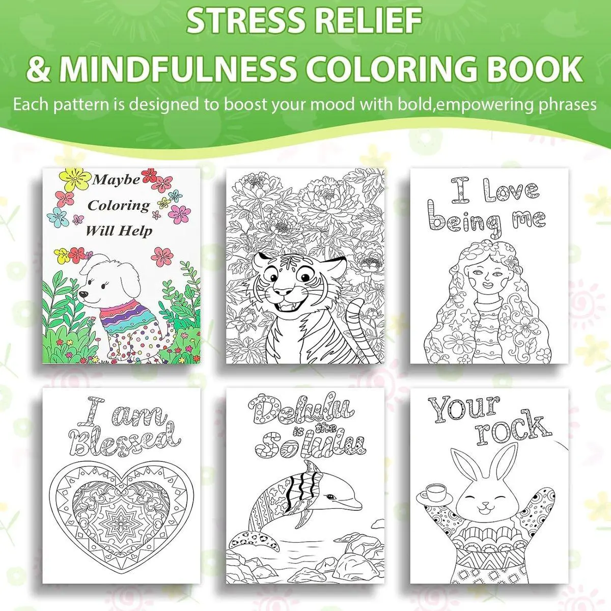 5. Adult Coloring Books Set of 2, Coloring Books for Adults Relaxation, with Funny Words & Mindfulness Coloring Book -The Perfect Relaxation and Relieve Anxiety Gift for Women