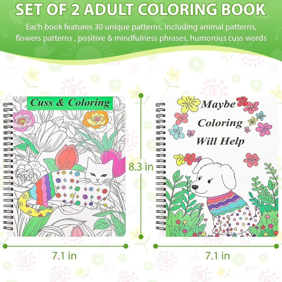 Adult Coloring Books Set of 2, Coloring Books for Adults Relaxation, with Funny Words & Mindfulness Coloring Book -The Perfect Relaxation and Relieve Anxiety Gift for Women