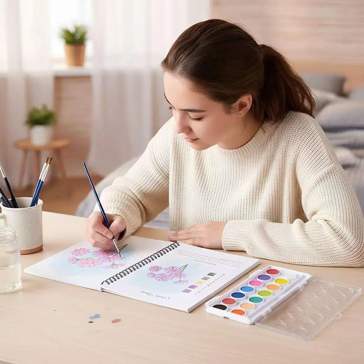 【Relaxing Anytime,Anywhere 】The watercolor book features a portable,compact design that makes it easy to bring along on trips or park,enjoy cozy painting time at home with friends.Start a relaxing creative journey when inspiration strikes