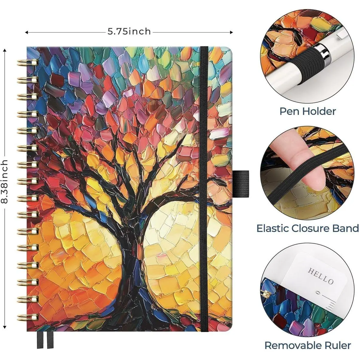 MULTI-LAYOUT DESIGN: Distinctive colorful Tree of Life cover with symbolic meaning, unique from basic styles. Inside features 154 lined pages, content page, month plan, yearly schedule and wish list—ample space for all writing & planning, with easy referencing