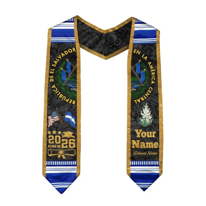 El Salvador and USA Flag Graduation Stole 2026 Personalized Salvadoran Pride Graduation Sash