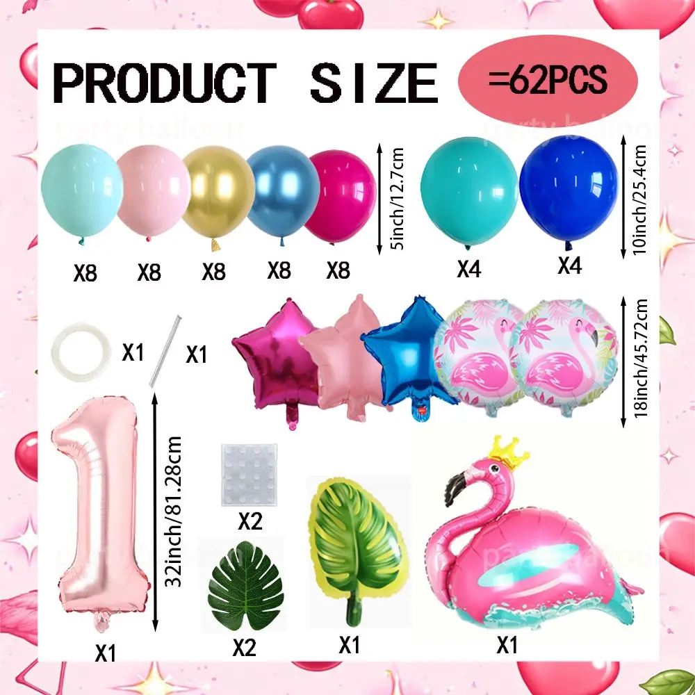 Hawaiian Flamingo Birthday Party Decor Set, Maroon Latex Balloons, Rose Gold Numbers, Outdoor Picnic, Pool Party, Cafe Decoration